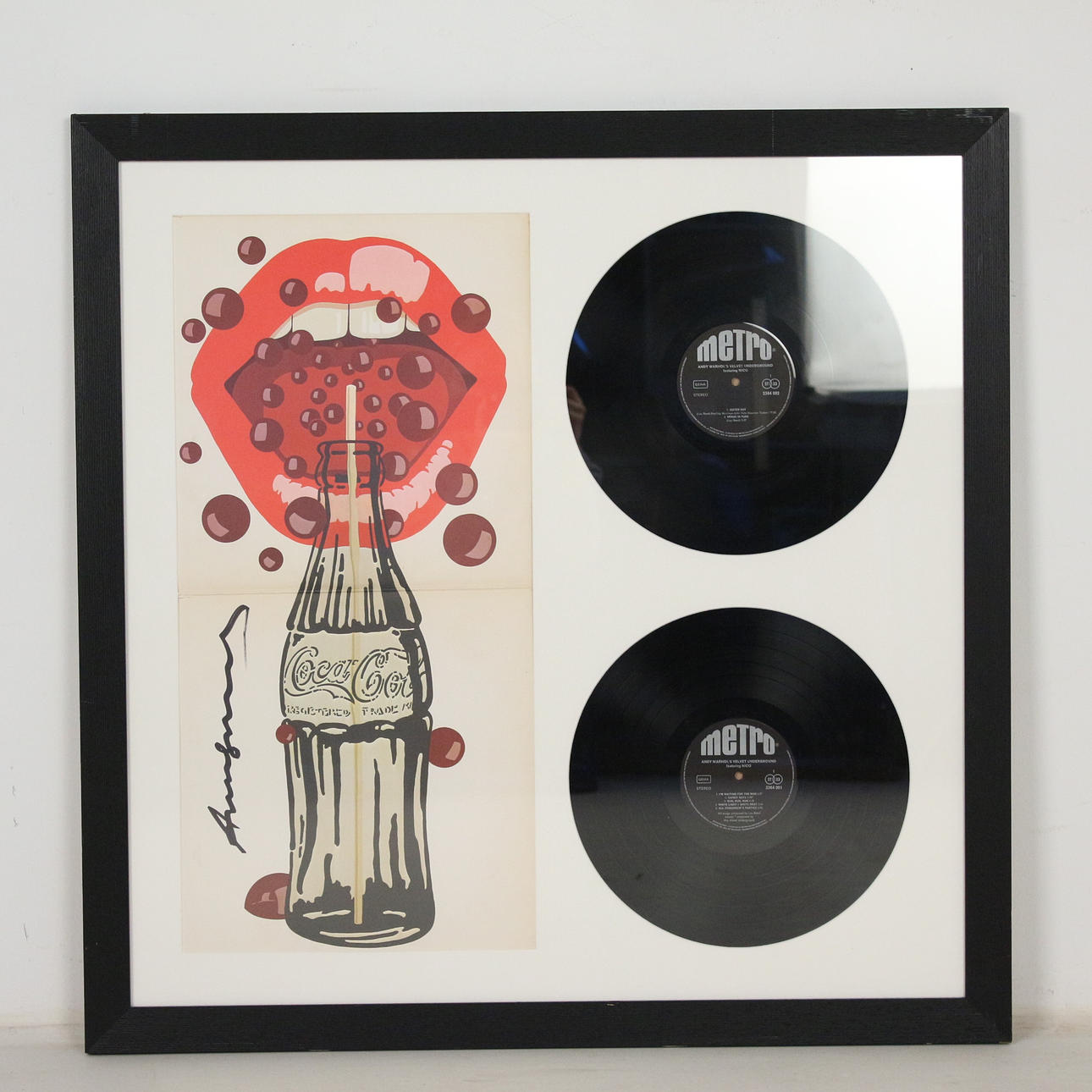'Andy Warhol's Velvet Underground featuring Nico', multiple, 2 color lithographs, two long-playing records and record cover, signed, framed behind glass, dimensions approx.: 79x79cm.