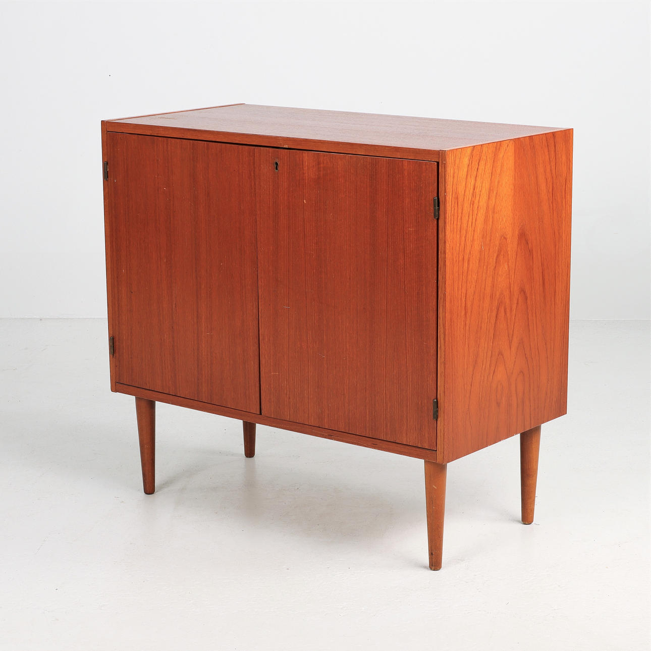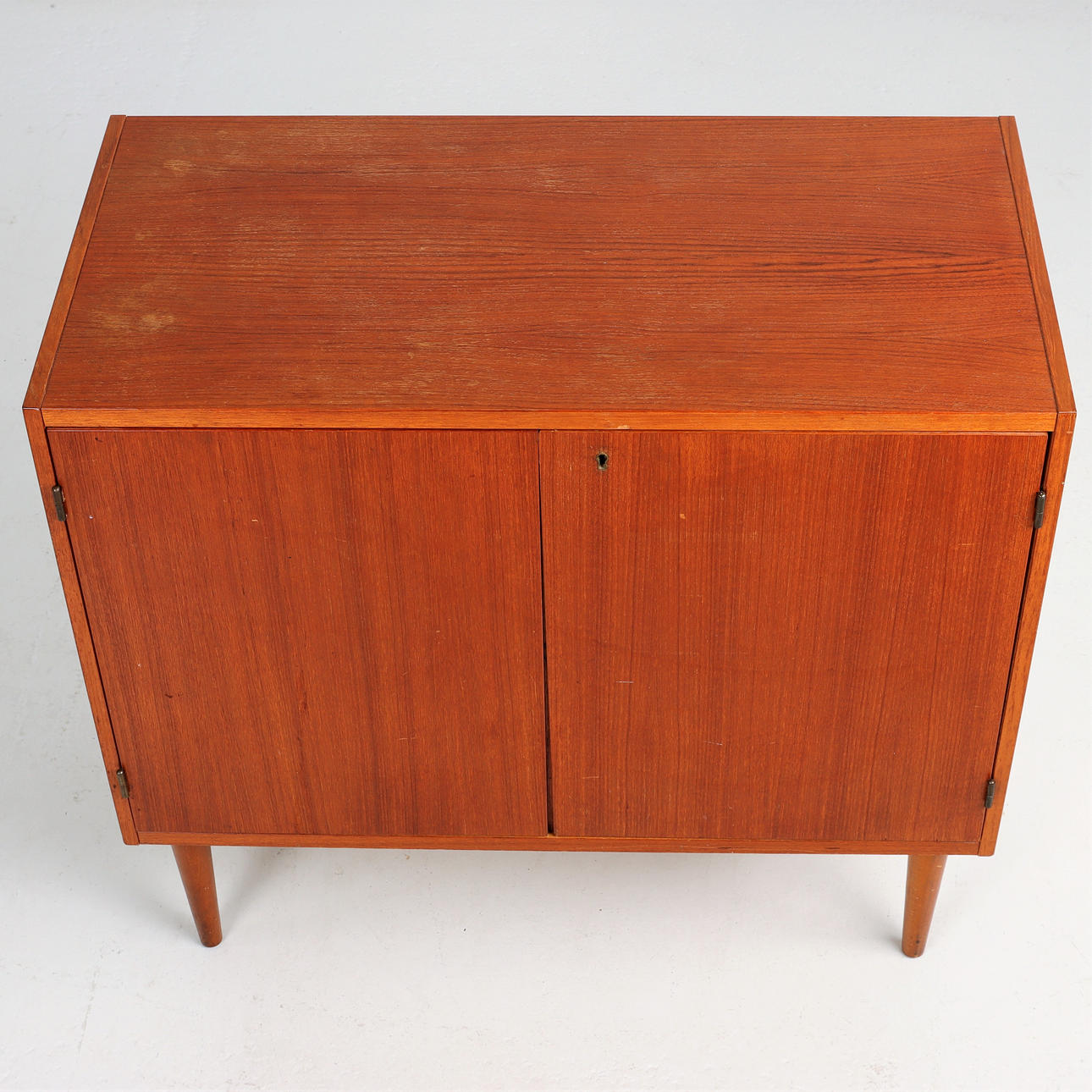 Cupboard with 2 doors, teak. Height 70 cm Width 75 cm Depth 37 cm.