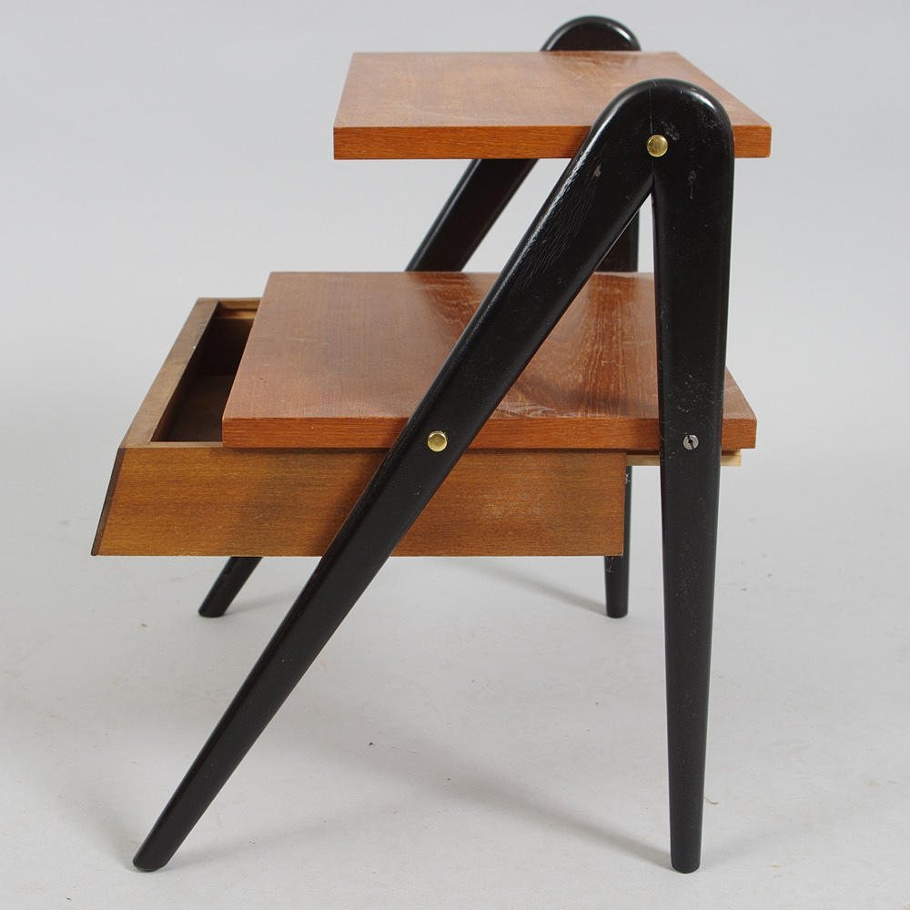 203268. BED TABLE, teak with black painted ends, 1950s.