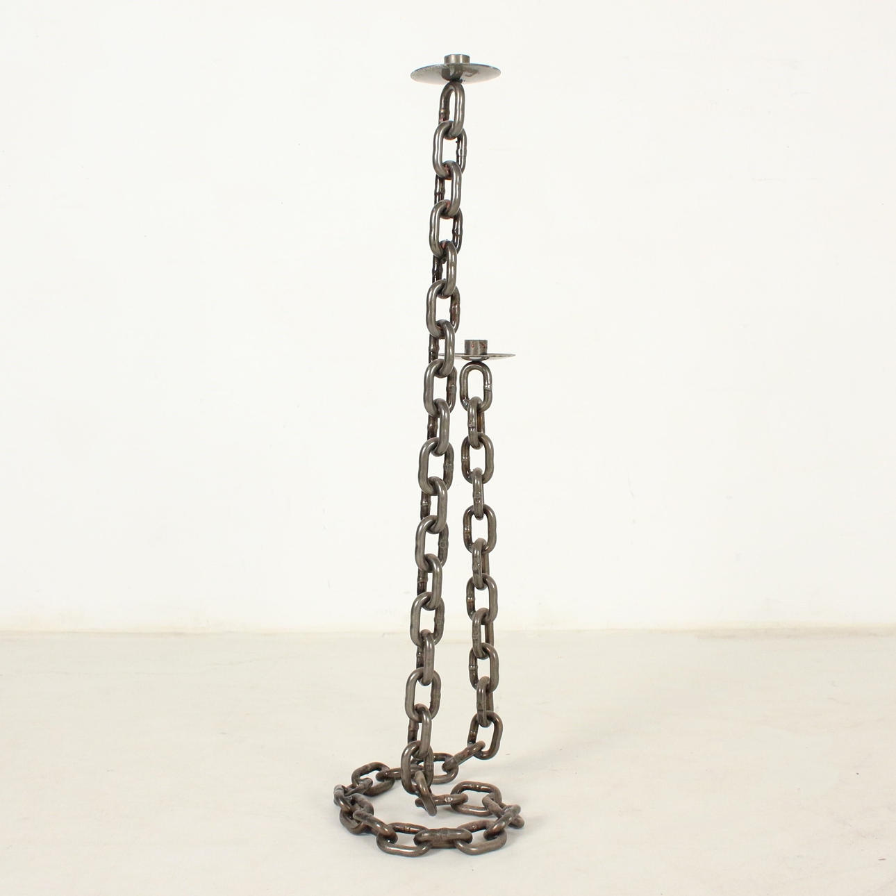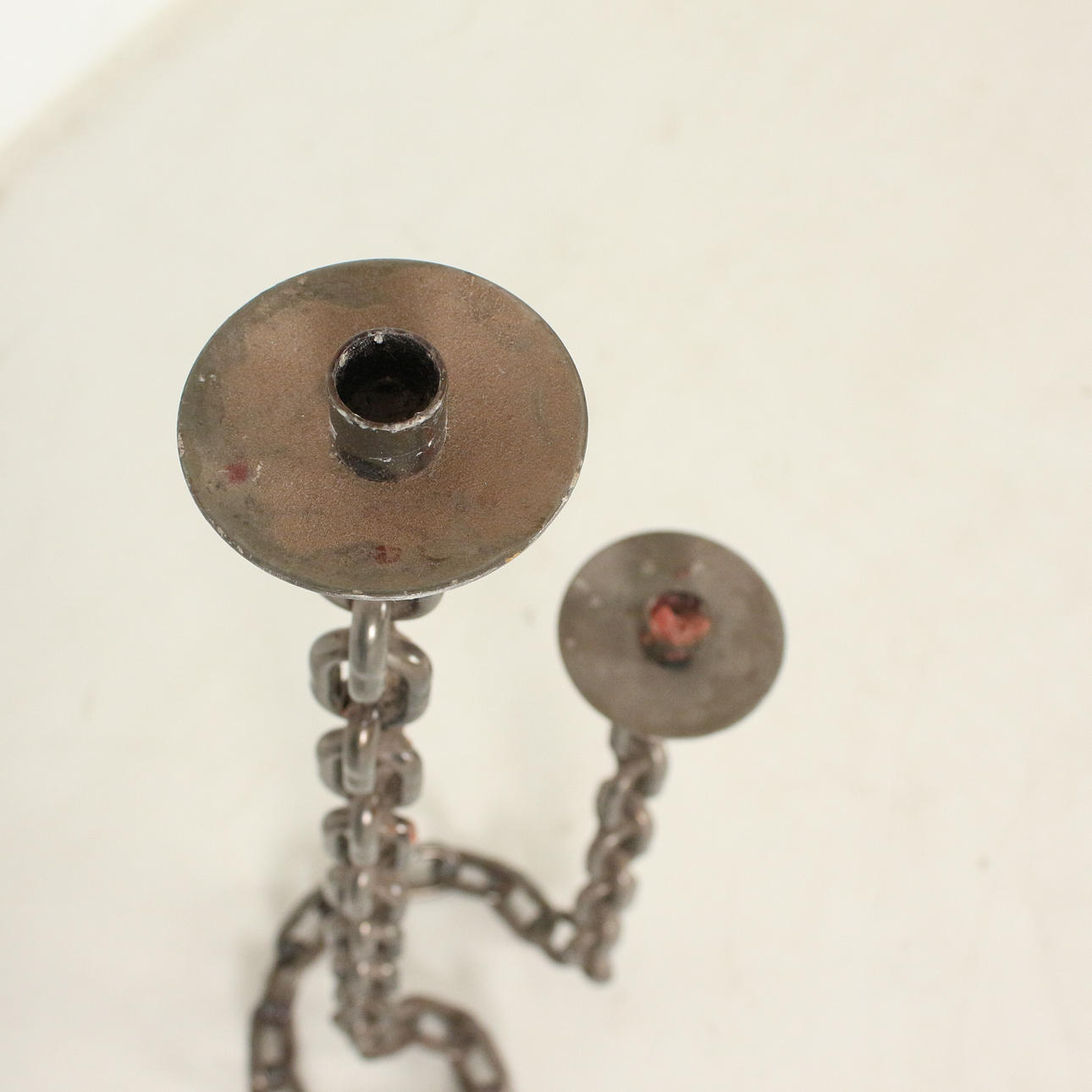 Candlestick, metal, for 2 candles, dimensions approx.: H. 80 cm, W. 24 cm, D. 22 cm.