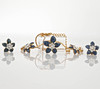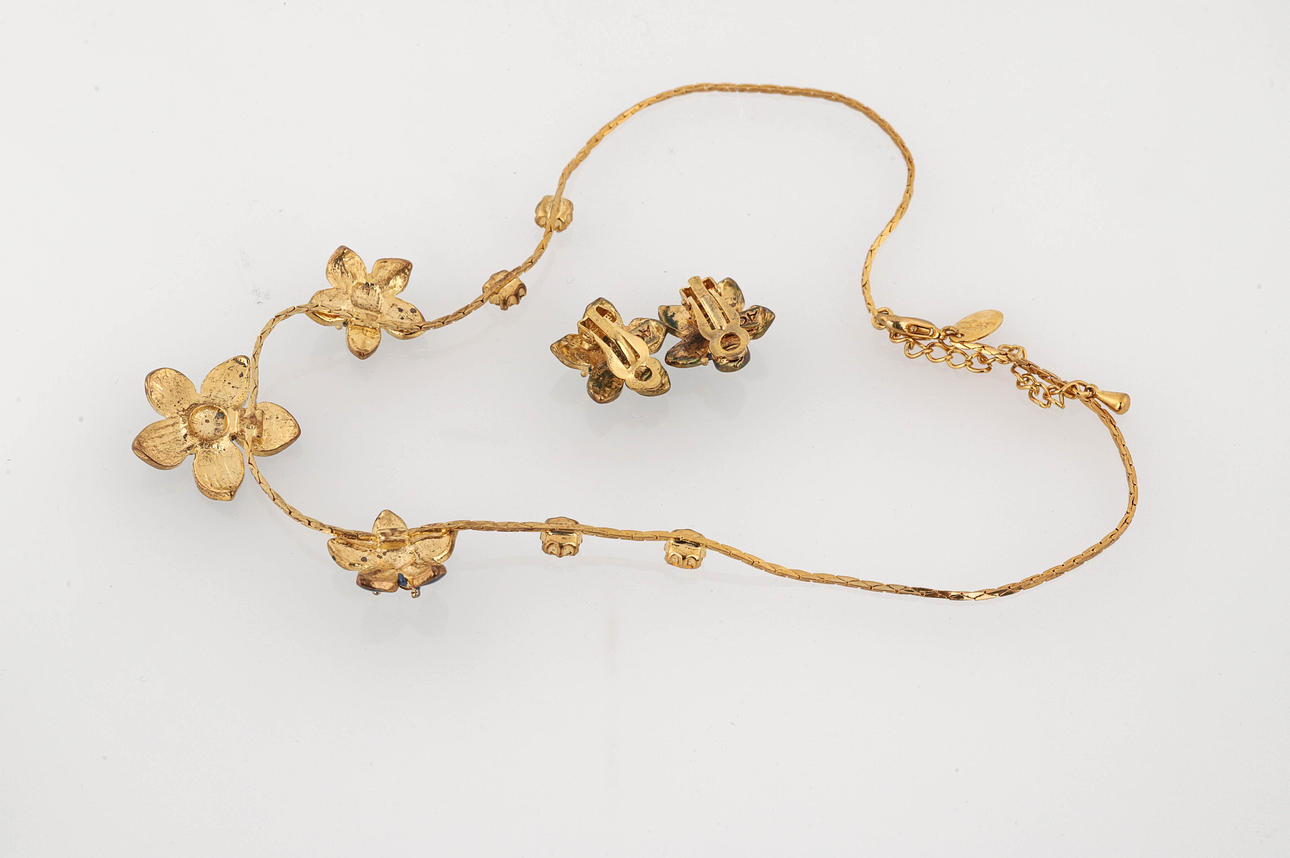 Necklace with integrated flowers, blue enamel and white stones. Length 44-49 cm.