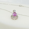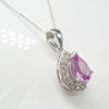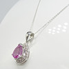 Claw-set at the centre of the pear-shaped pendant is a 2.15 carat natural hot pink sapphire gemstone.