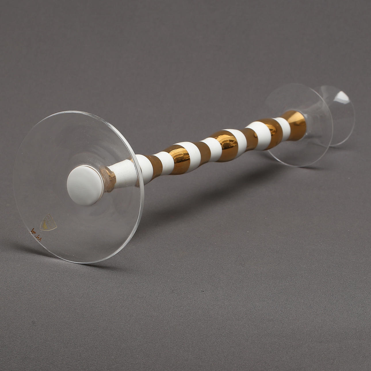 2040960. ANNE NILSSON. Candlestick, white/gold, Celeste, Orrefors.
