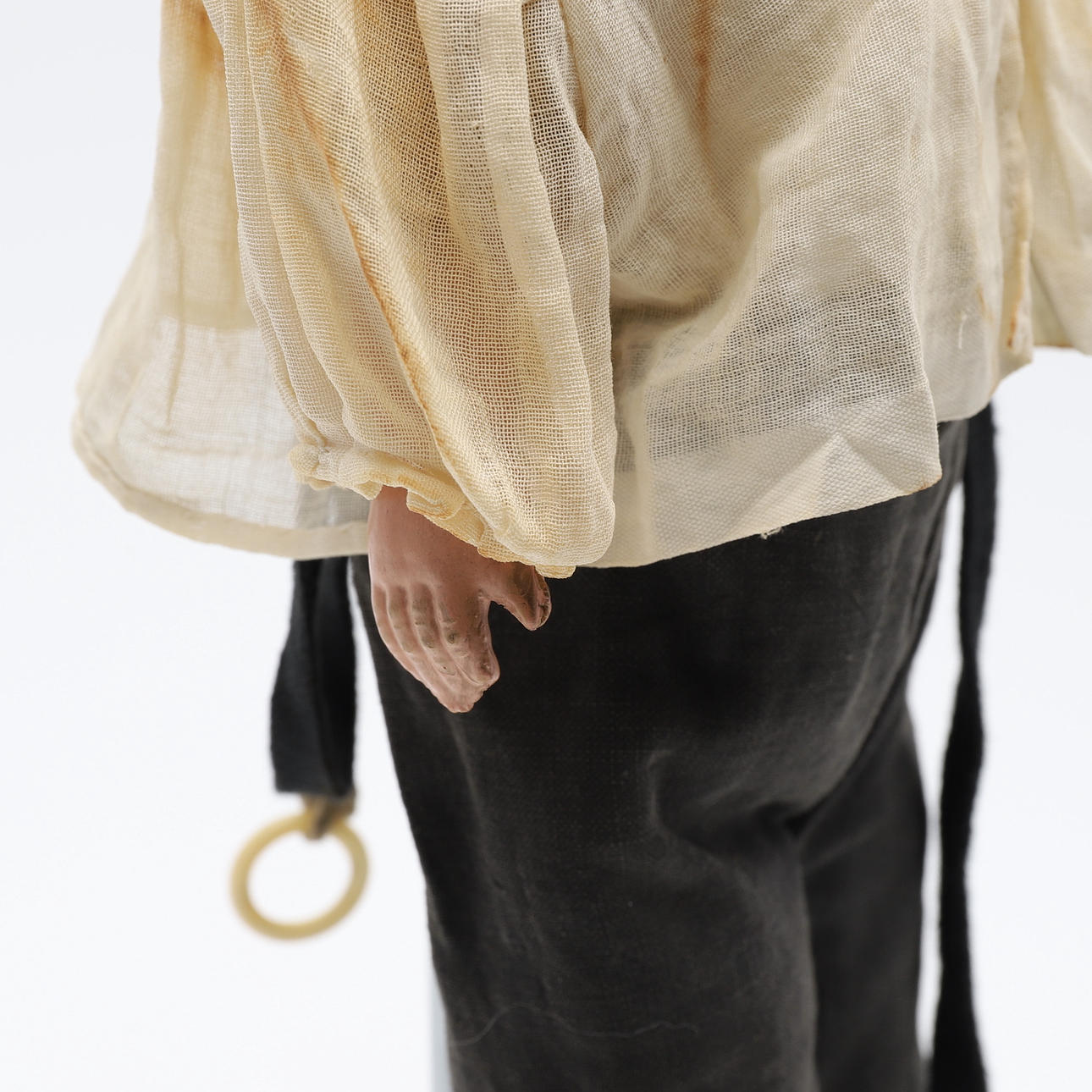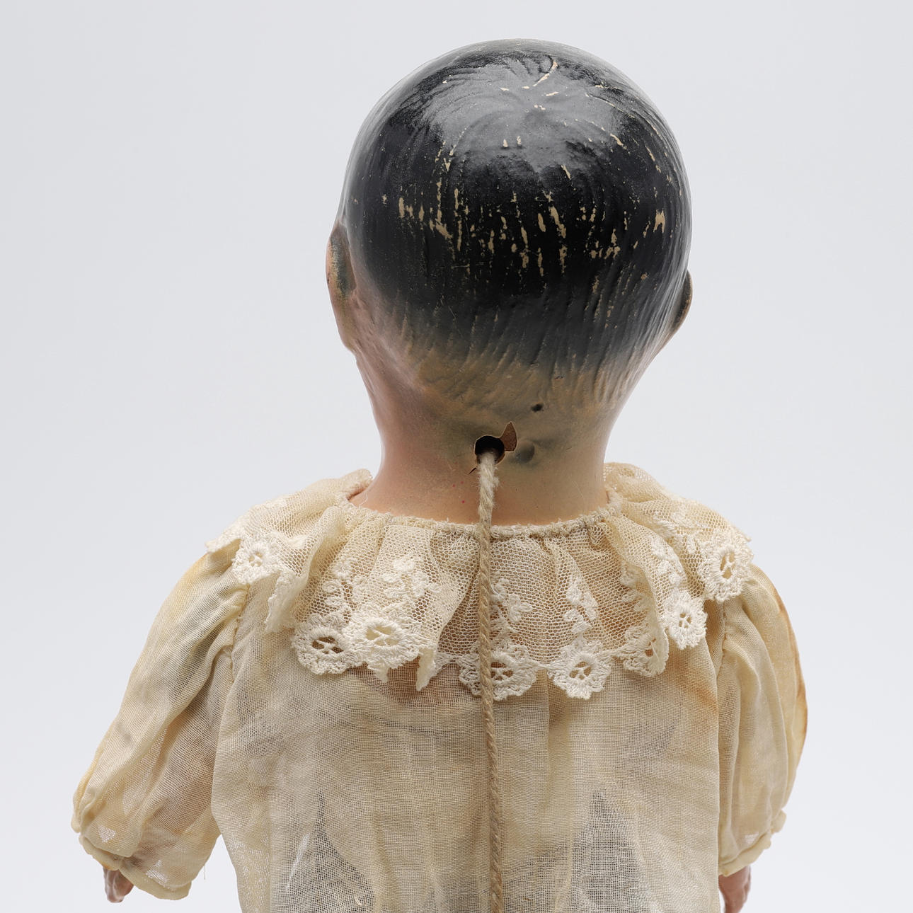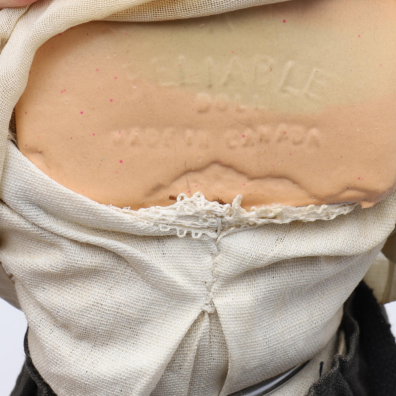Head of molded and painted composite, body of fabric with probably not original arms, length 19 cm, Canada first half of the 20th century, height 39 cm.