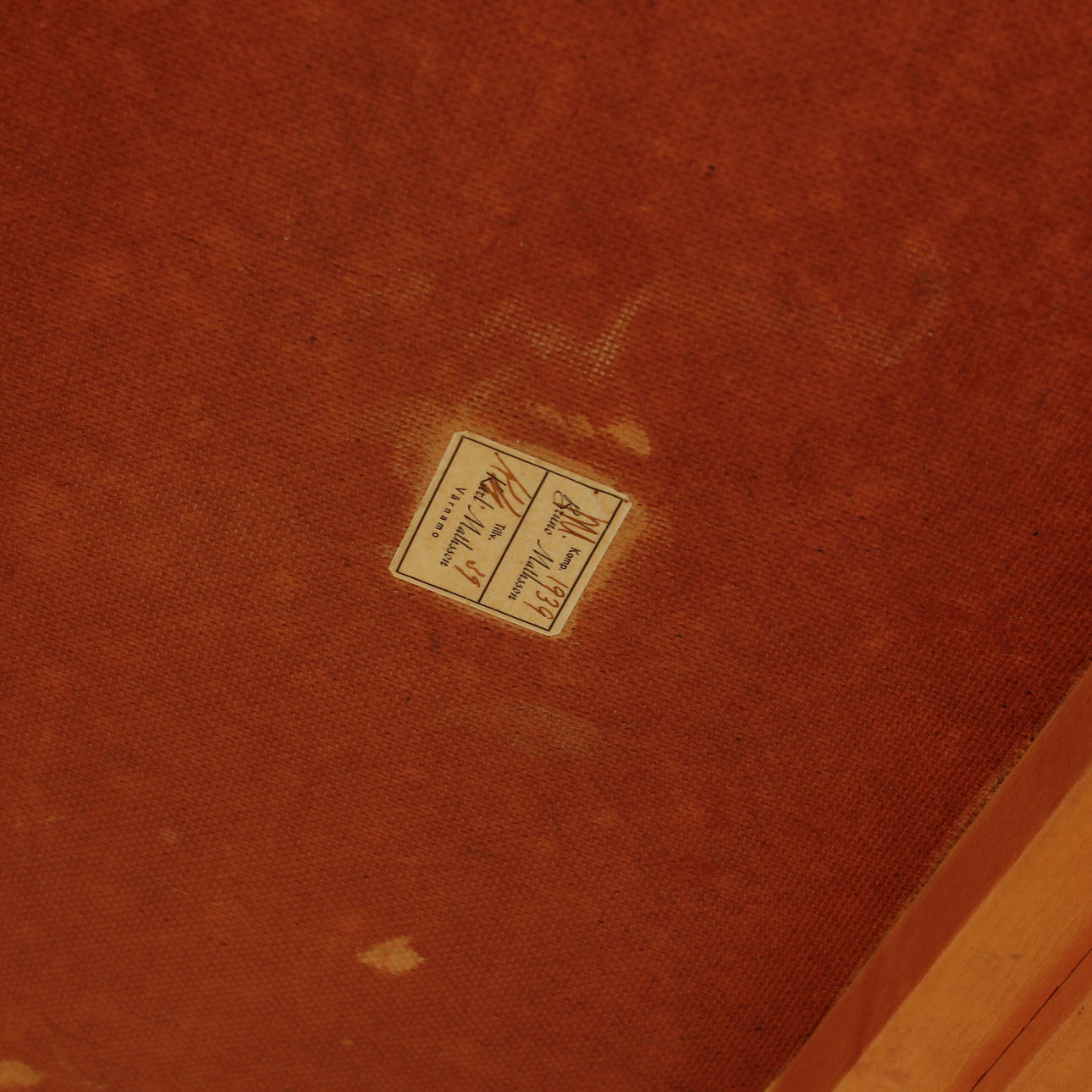 Panel in painted masonite. Length approx. 190, width approx. 85, height approx. 72 cm. Labeled underneath.