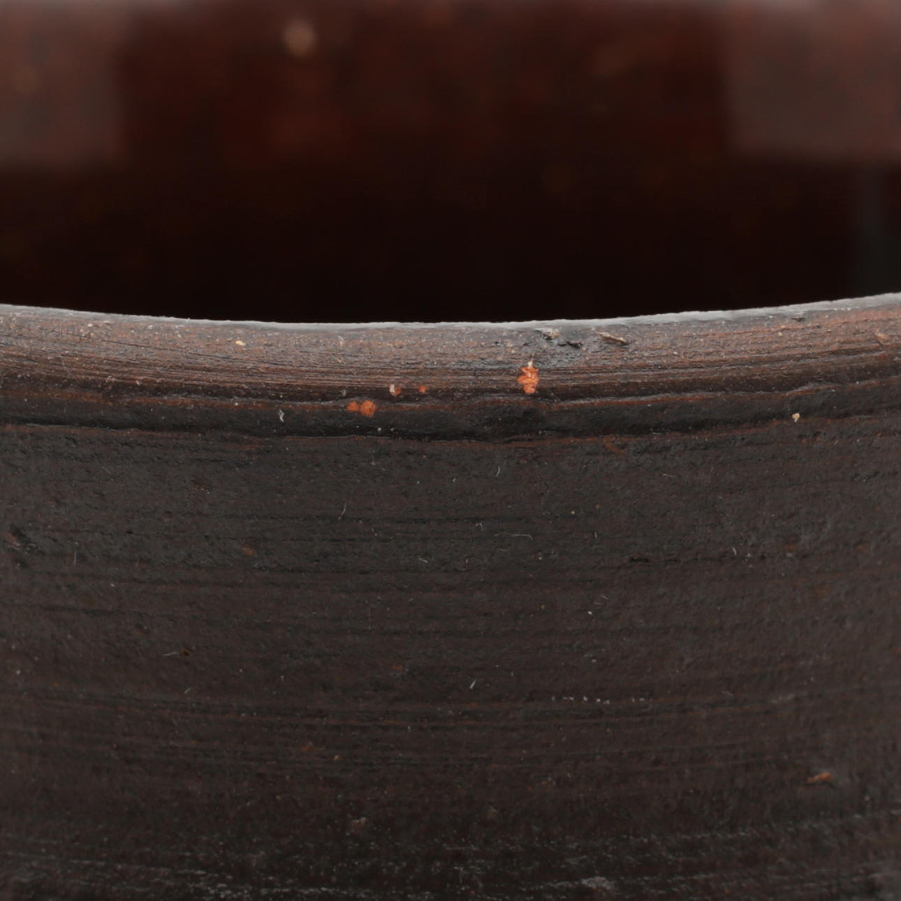 Normal wear and tear. Minor loss of glaze at mouth, see picture.