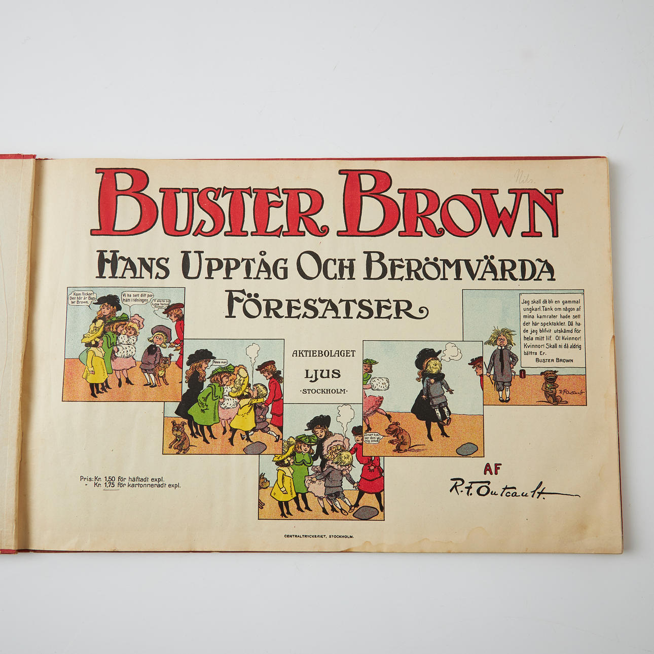 OUTCAULT, RICHARD FELTON. Buster Brown, his antics and laudable intentions. (Stockholm), Light, (1908).