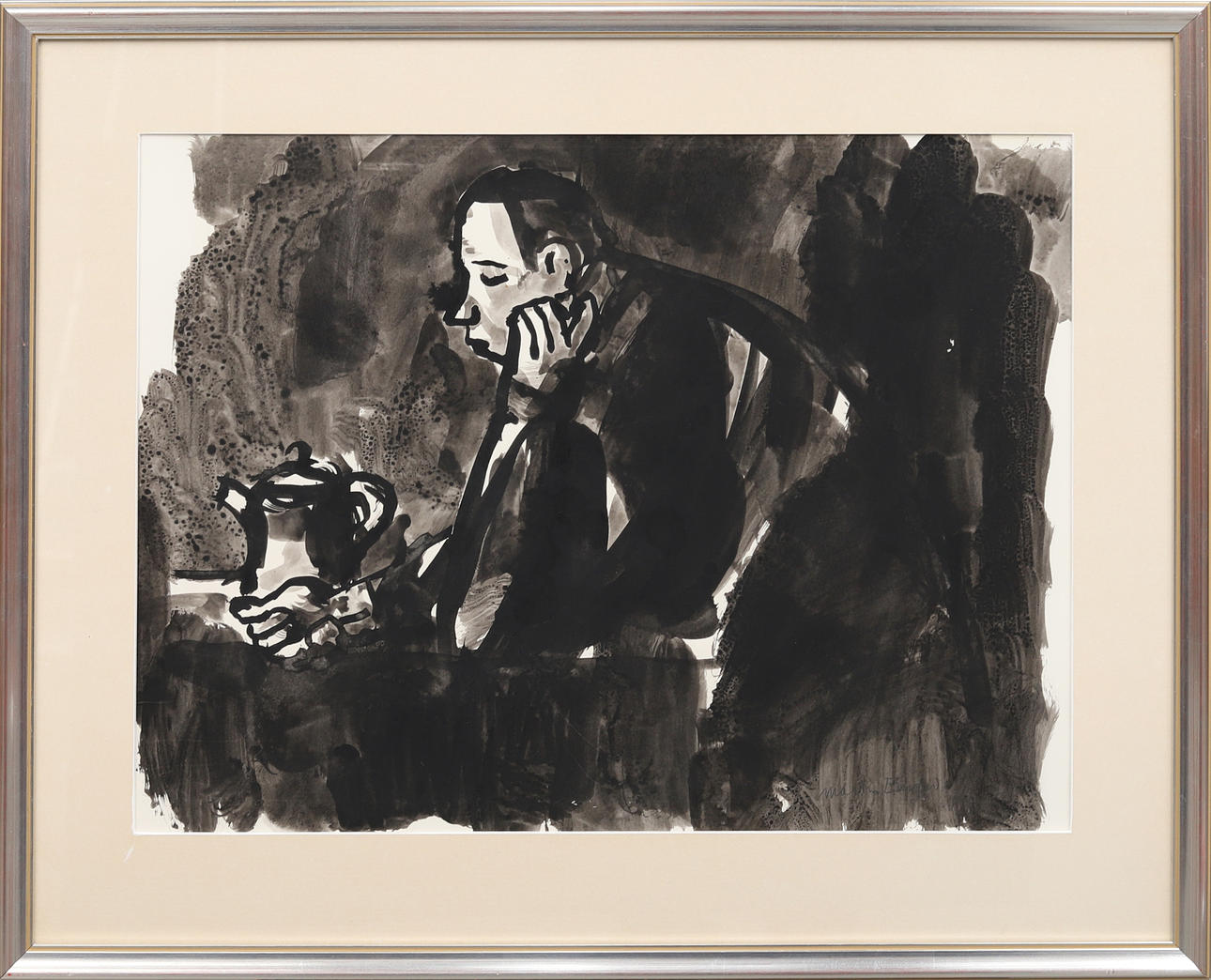 2054522. MARTIN EMOND. "By the Coffee", watercolour, signed.