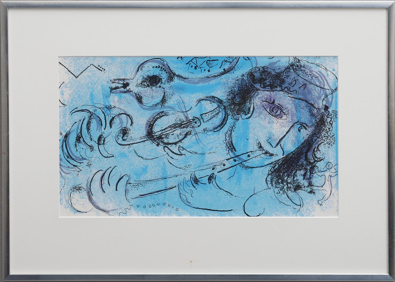 2055705. MARC CHAGALL. "Le joueur de flute" 1957, lithograph.