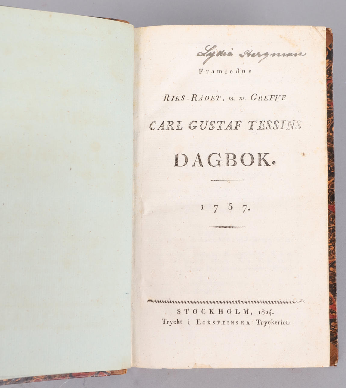 Carl Gustaf Tessin's Diary 1757, Ecksteinska Tryckeriet, Stockholm, 1824.