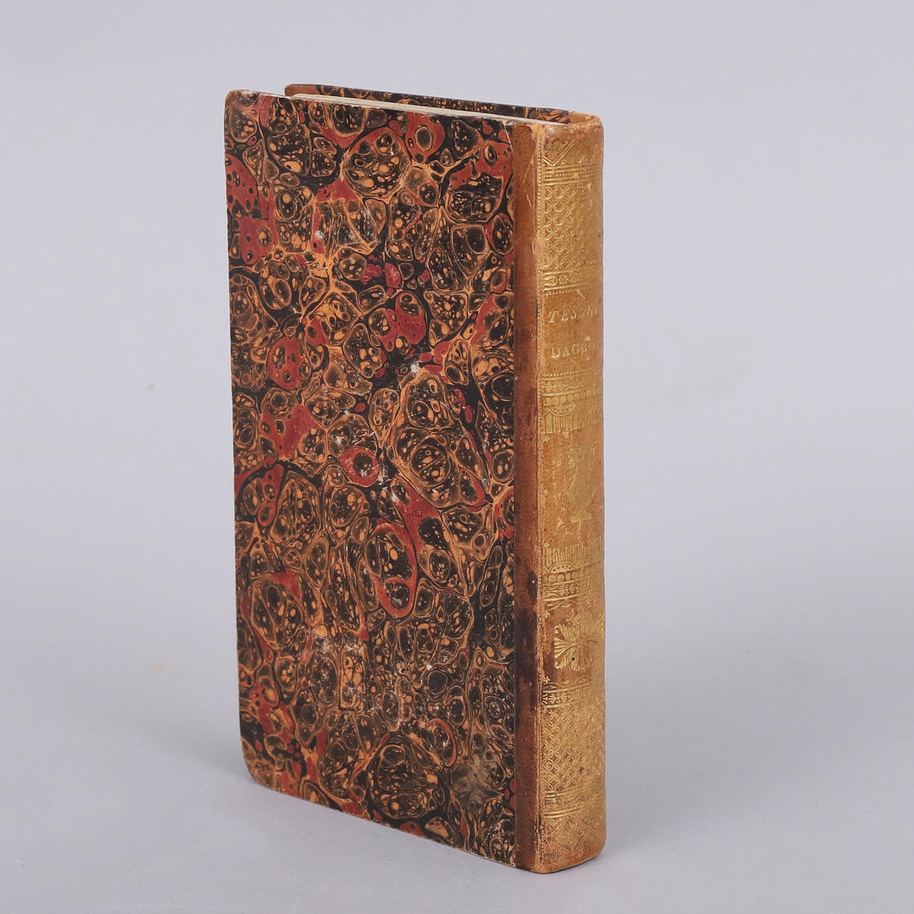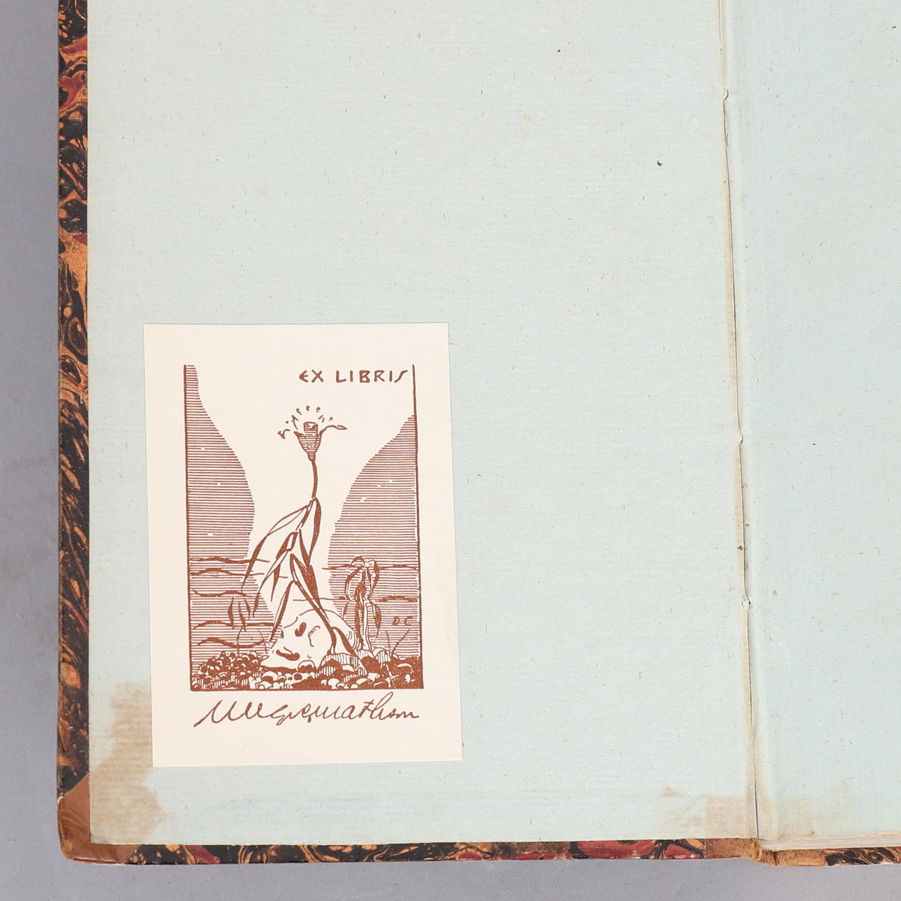 Cover page with Ex Libris, minor moisture damage in corners. Inside with renovated side edges, underlining in red ink occurs.