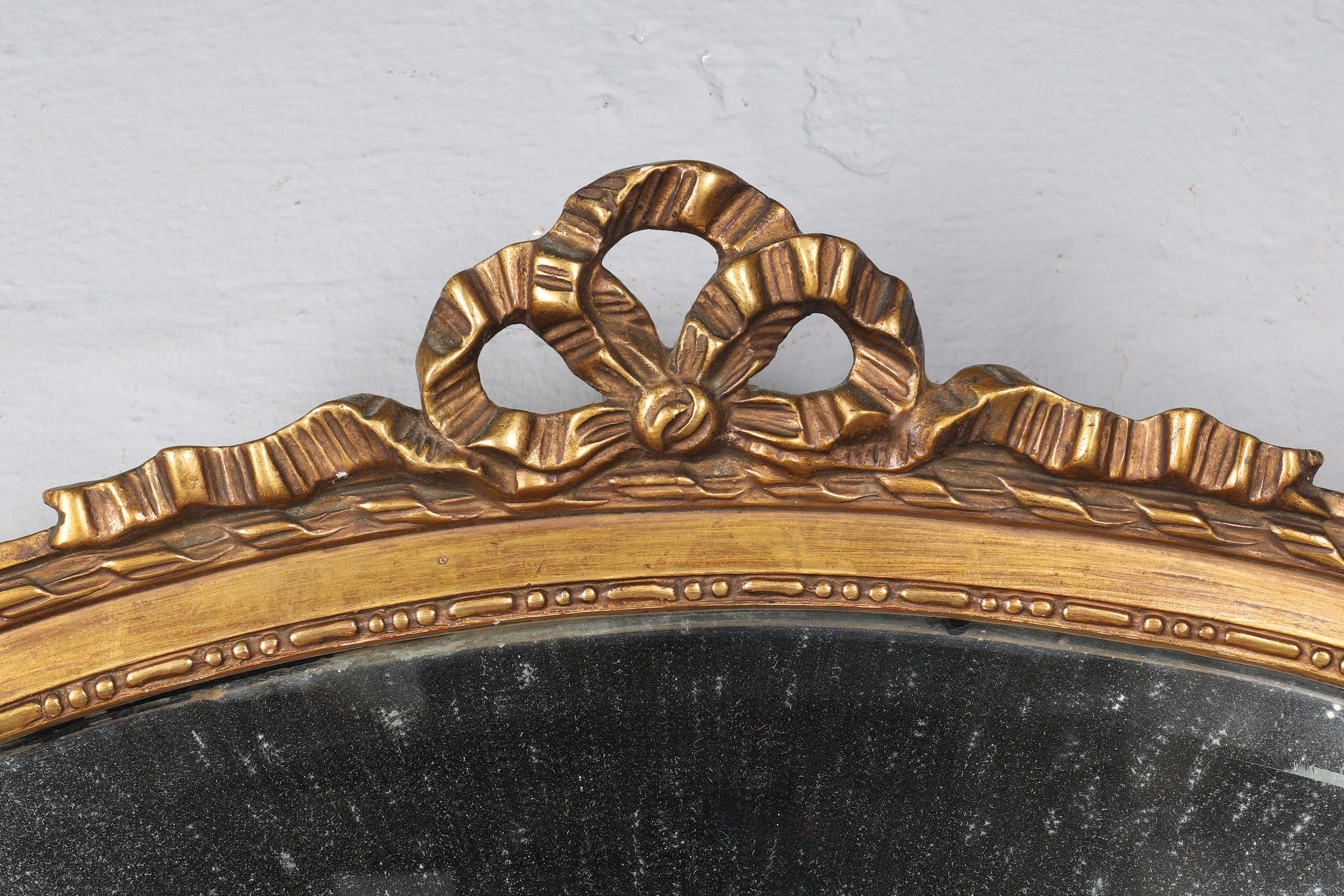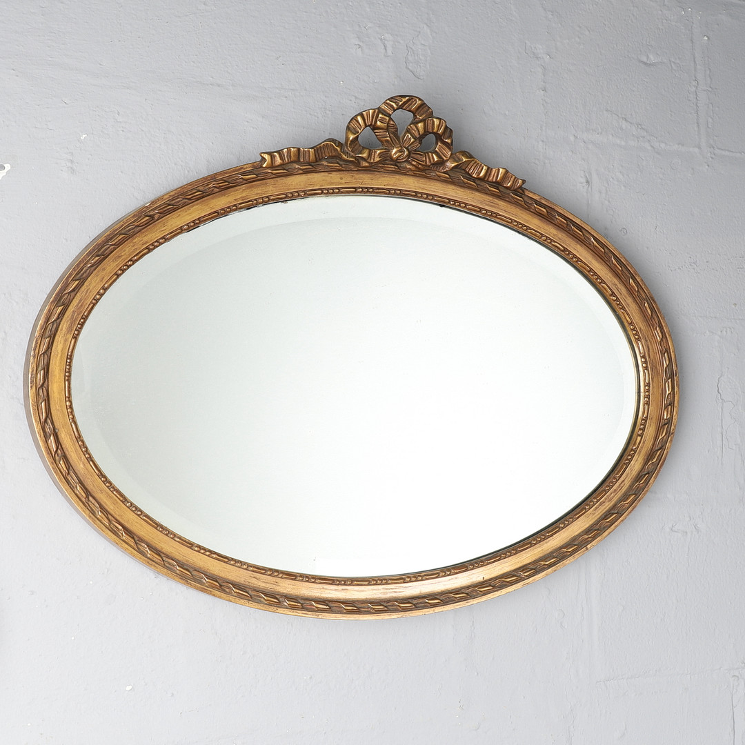 2057157. AN OVAL GILT FRAMED WALL MIRROR.