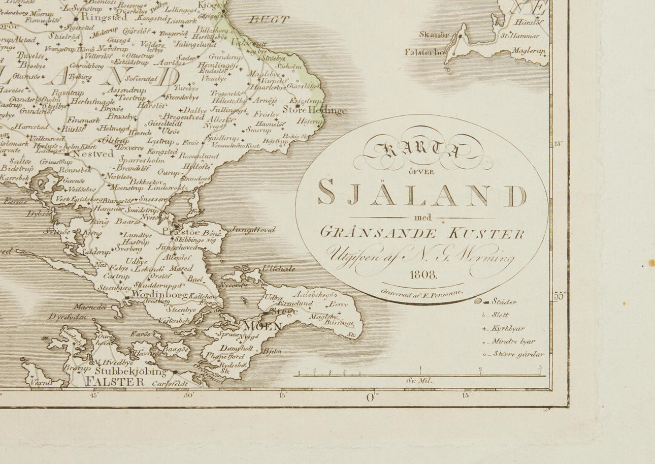 Together with: Werming, Map of Zealand (1808); Denmark (ca. 1800?); Robert, Royaume de Danemarck... (ca. 1750).