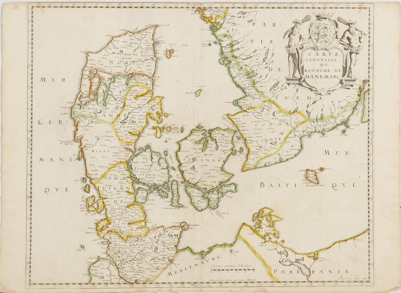MAPS DENMARK (4). Among other things Carte Generale du Royaume de Danemarc. Paris, Pierre Mariette, 1646.