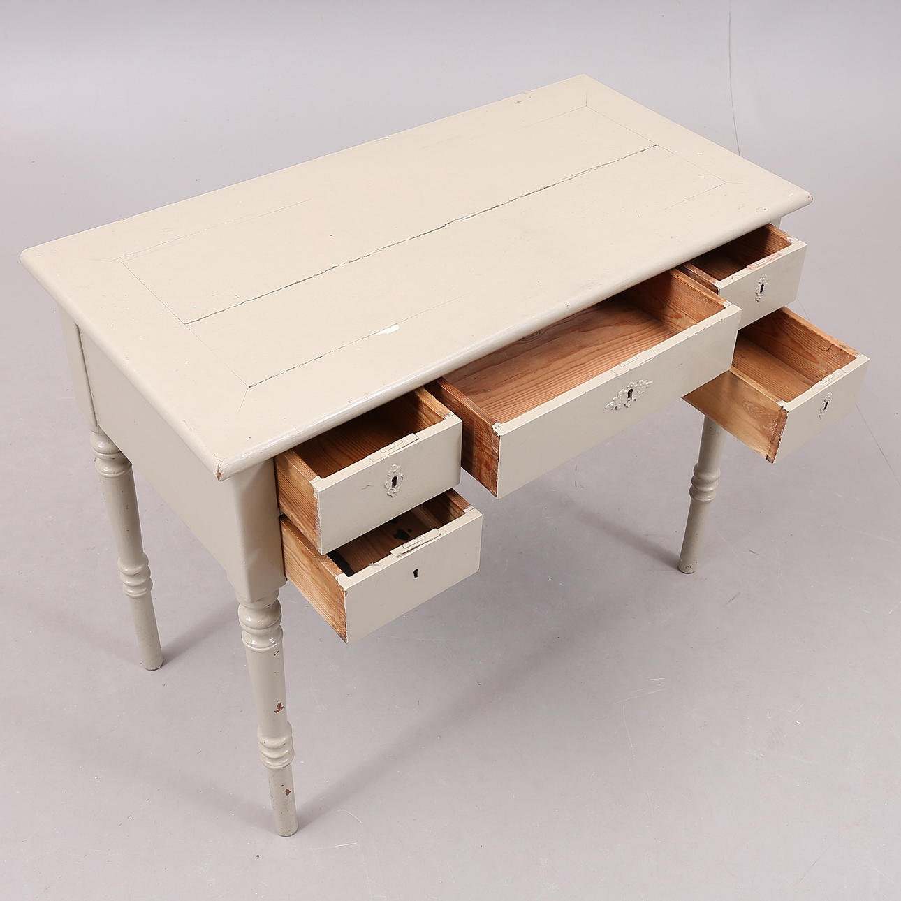 Later painted, marks, paint loss, larger cracked disc.