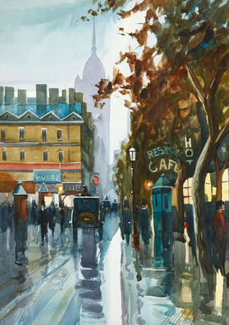 2066727. BERNARD BUFFET. Street scene with reclining figure, color lithograph, signed and numbered 224/300.