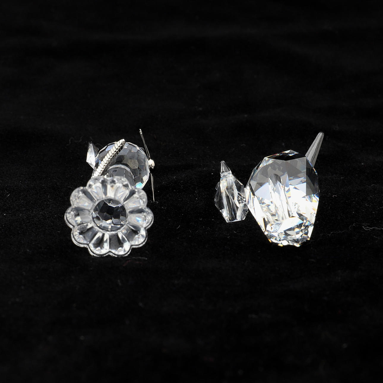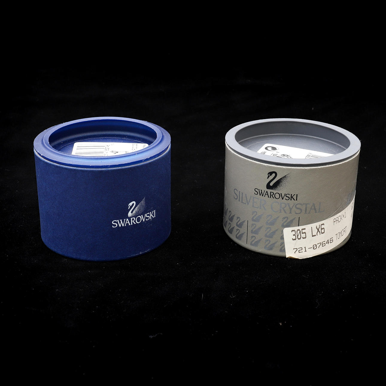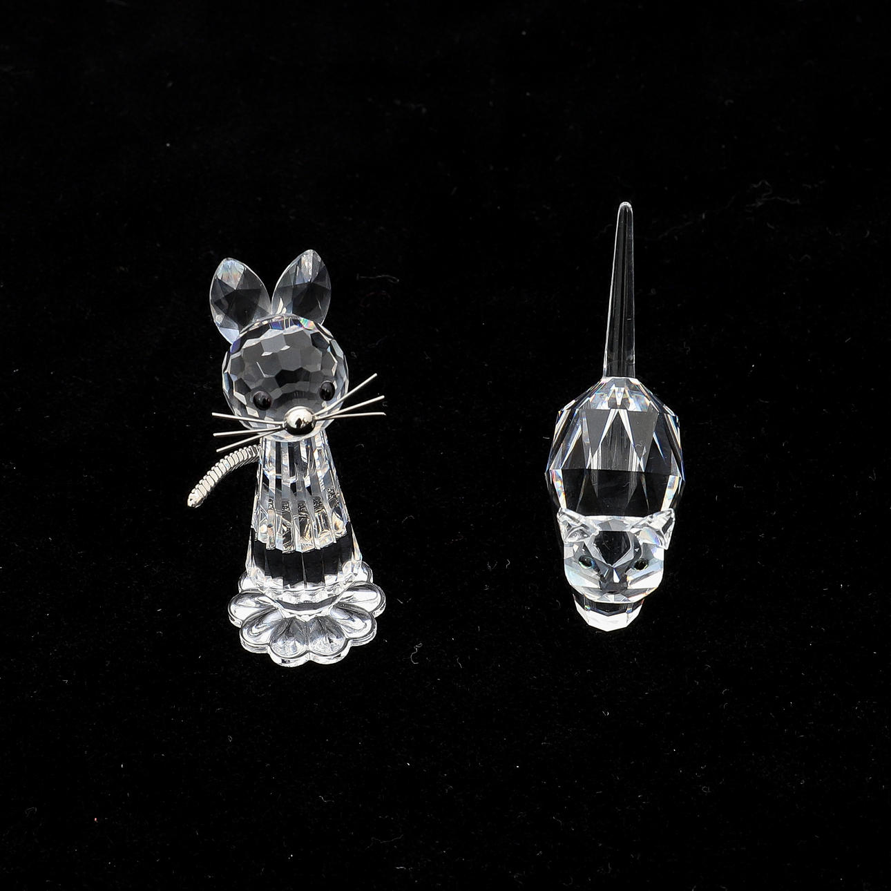 number 198241, the tom cat in clear crystal, 5cm high together with number 183274, Cat Replica, the sitting cat with silver tone metal nose, whiskers and tail, 5cm high, both with certificates and original boxes (2).