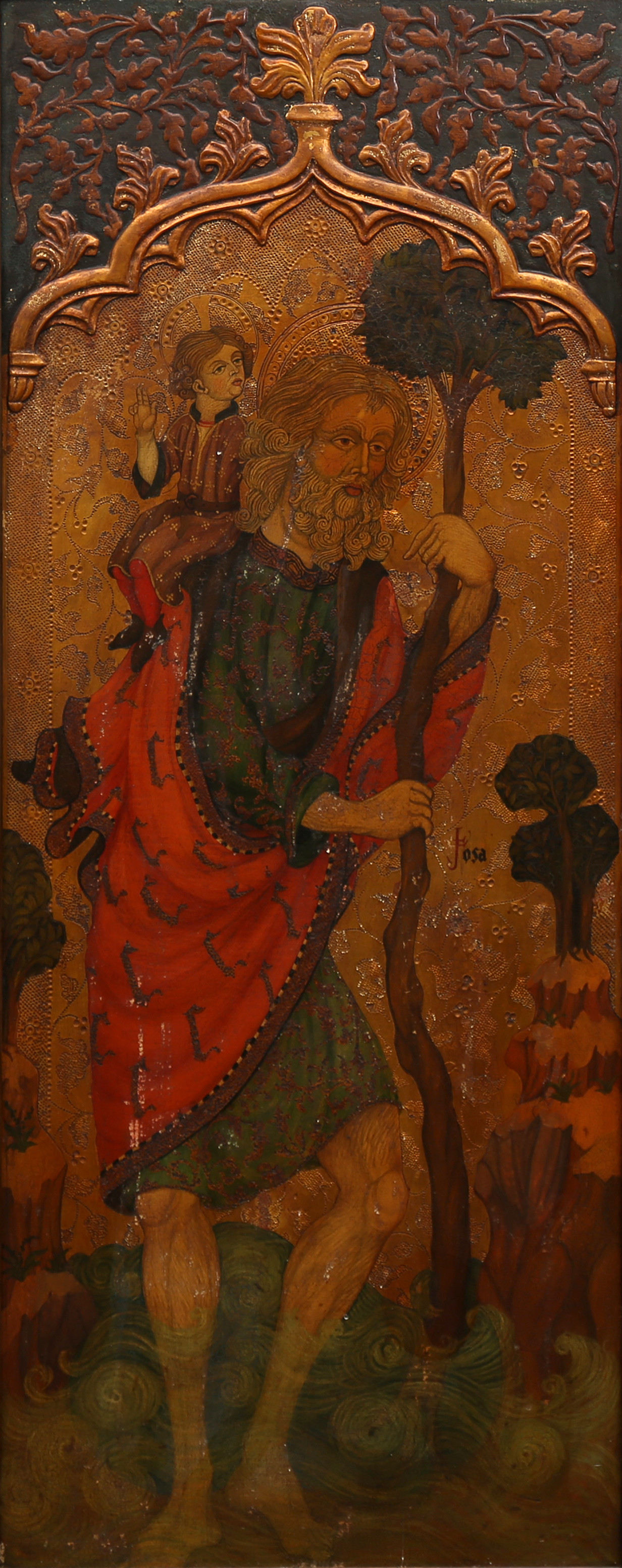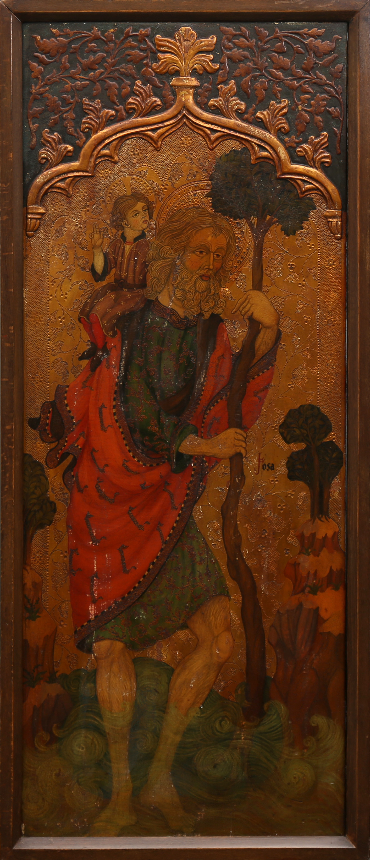 505. 2069206. CATALAN SCHOOL, FIRST HALF OF THE 20TH CENTURY, IN GOTHIC STYLE. Saint Christopher with Child Jesus.