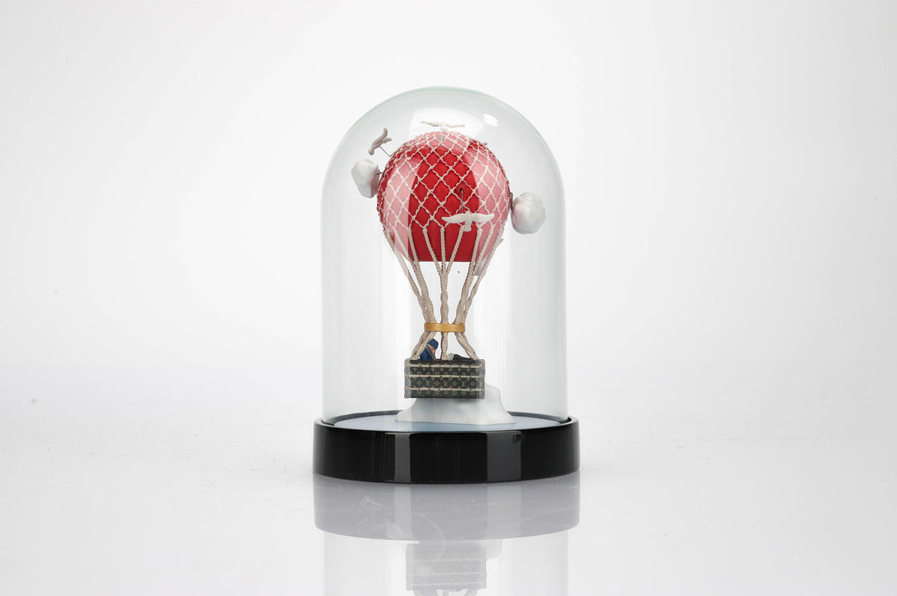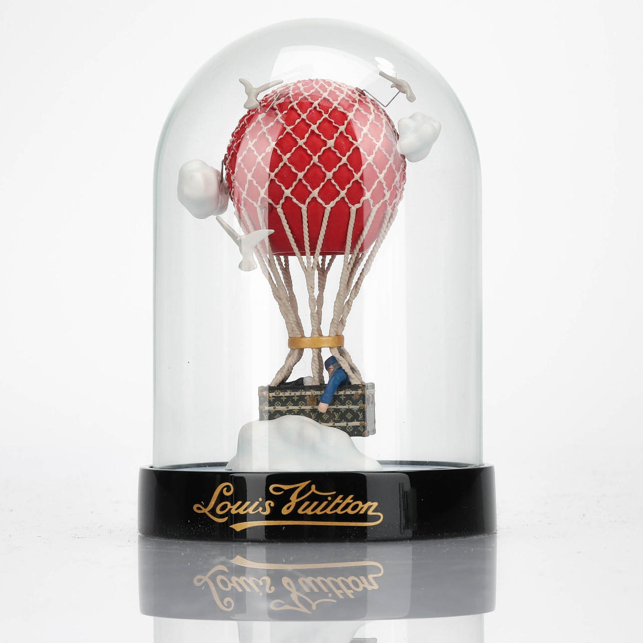 Letter press in the form of a glass dome containing a hot air balloon, with figure ii Louis Vuitton's travel case "Aero". Base marked "Louis Vuitton". Original box and description included plus bag.