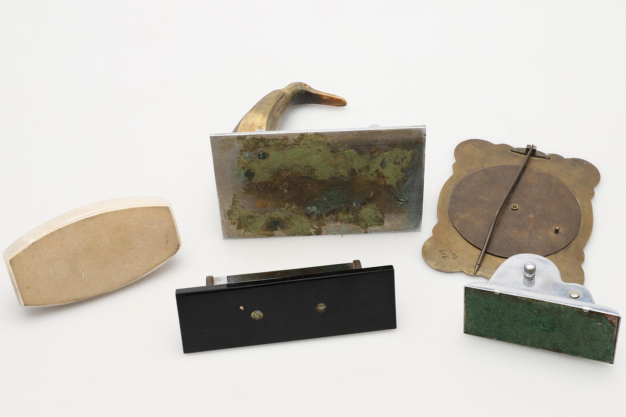another Indian brass easel desk calendar, (5).