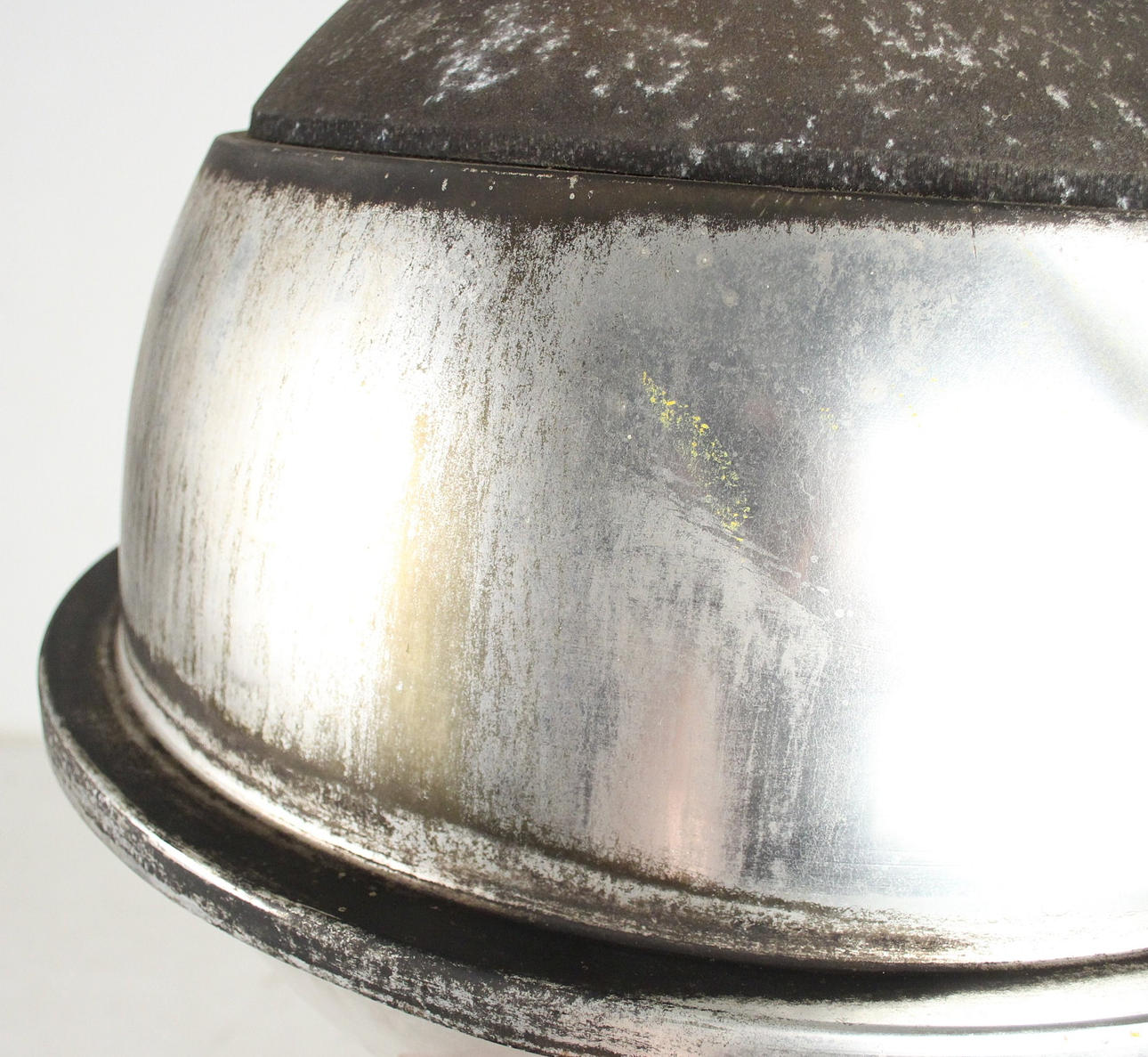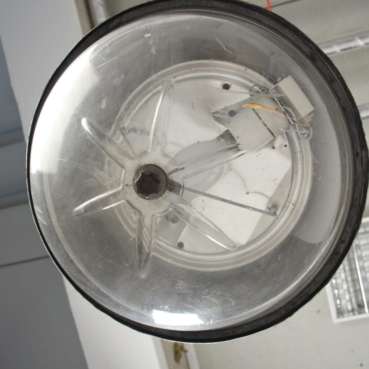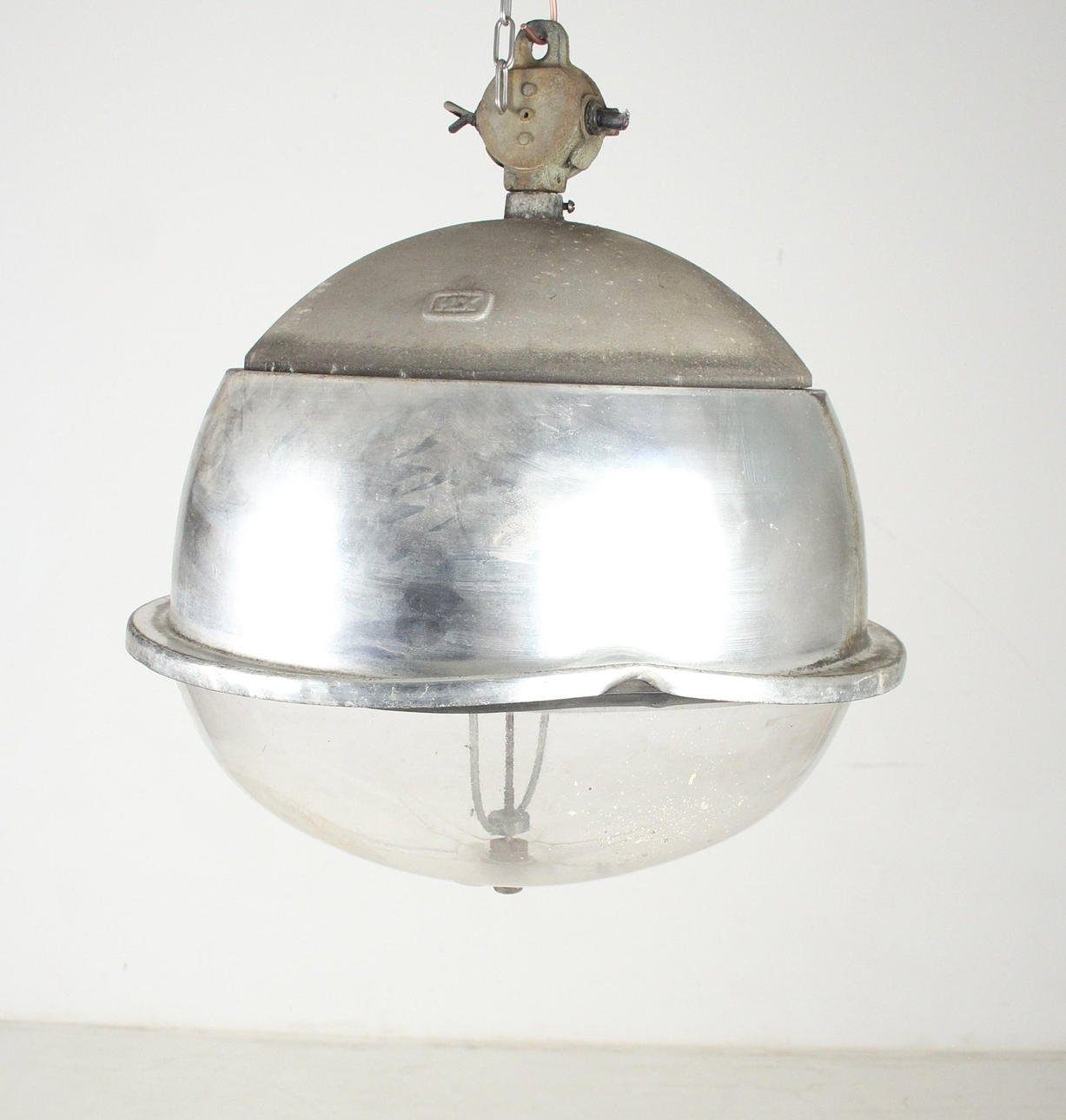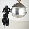 Industrial lamps, spherical, aluminium, acrylic glass/plastic Dimensions: D: 60cm (The chair and the window bust are not part of the auction.).