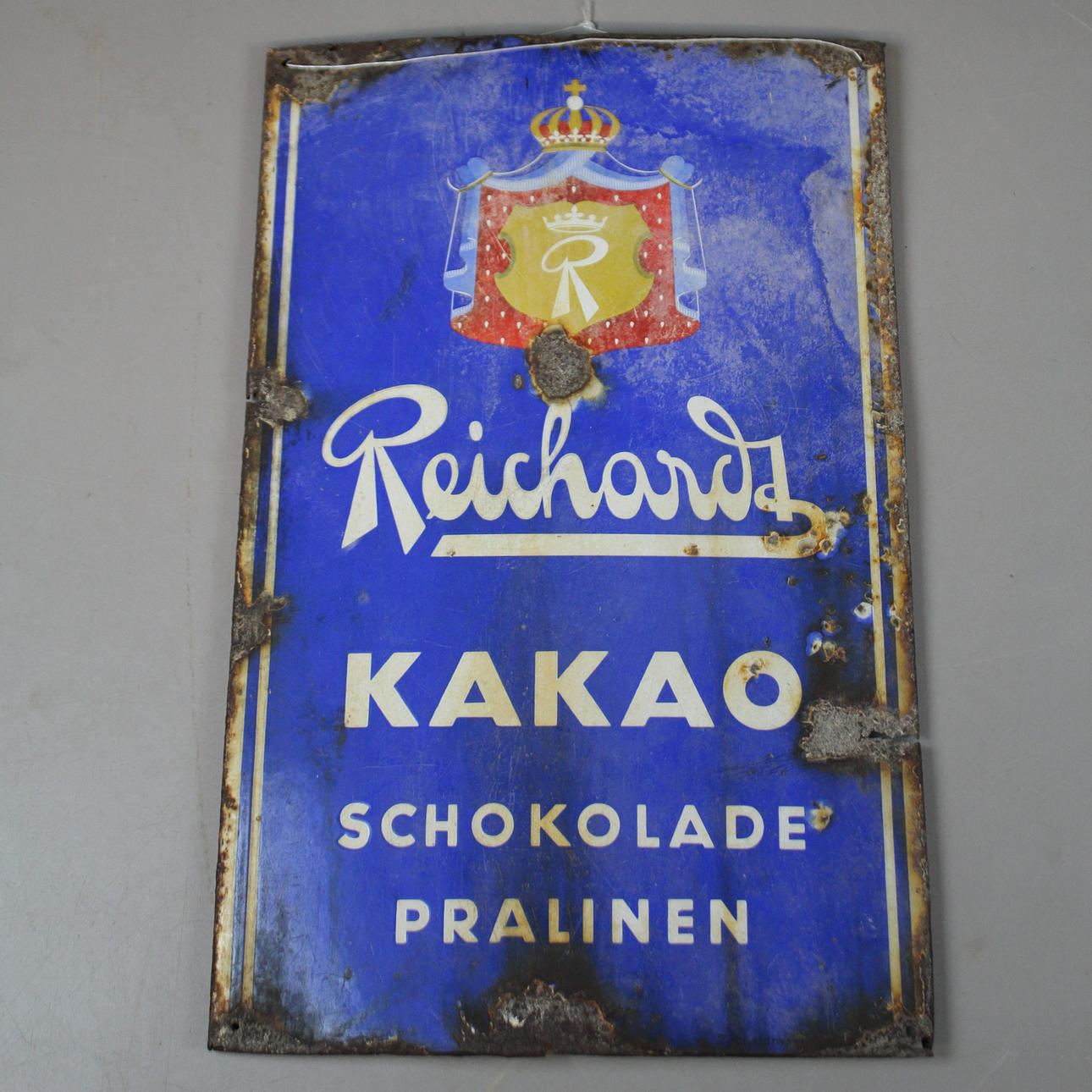 Reichardt cocoa, 58 X 37 cm Wire sign, 15 X 15 cm Dangerous wire, 15 X 7 cm BP shield, 16 X 16 cm.