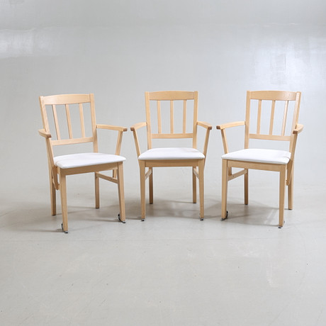 2085984. MATILDA LINDBLOM. dining group, 8 dlr, consisting of: 1 table "Please" and 6 chairs "Prima Vista" for Stolab, contemporary, solid birch, the table with extra insert underneath.
