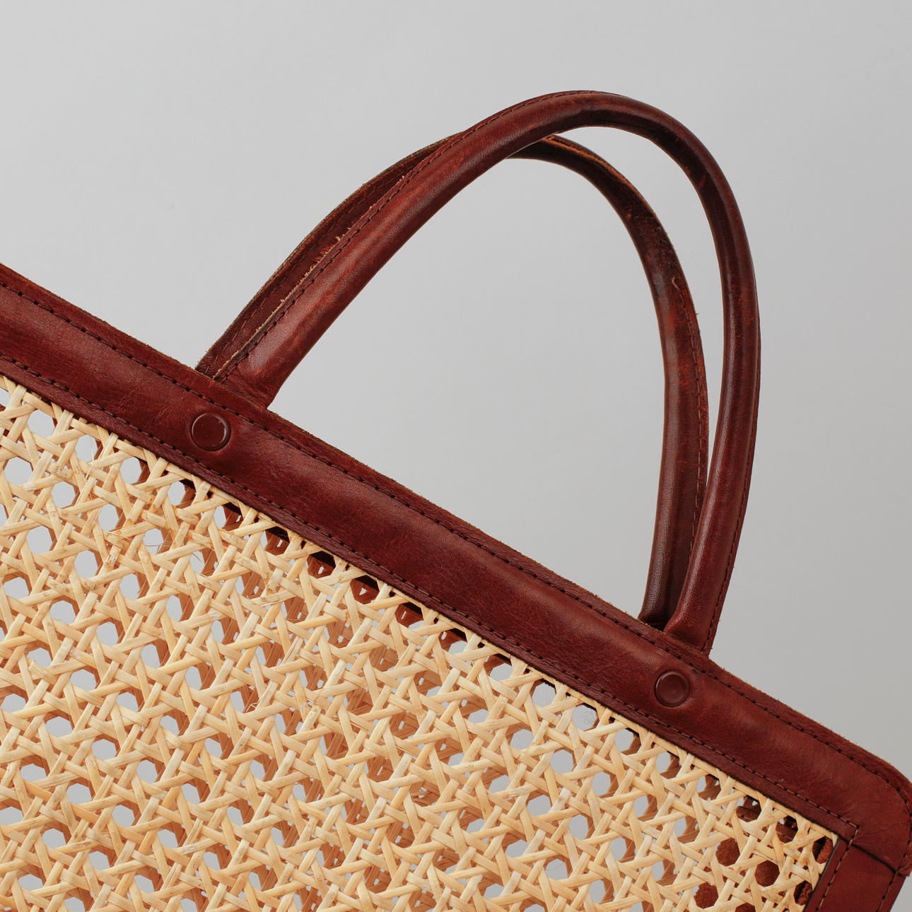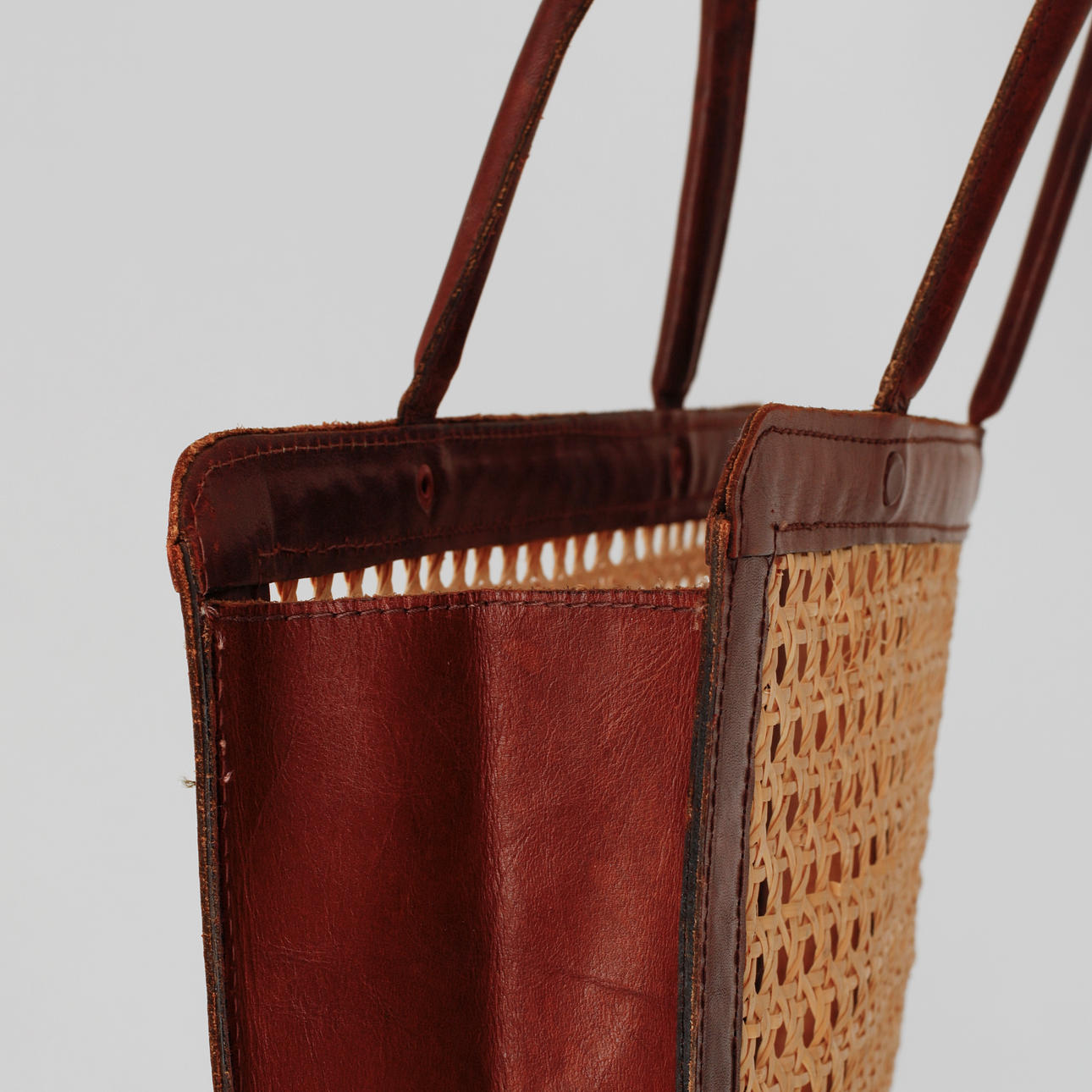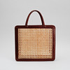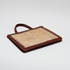 Brown leather and rattan, approx. 28.5 x 31.5 x 9 cm.