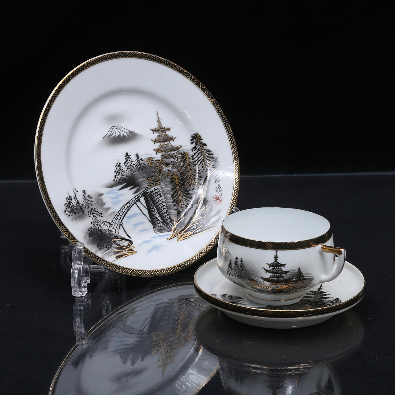 Geisha at the bottom of each cup.