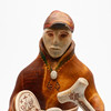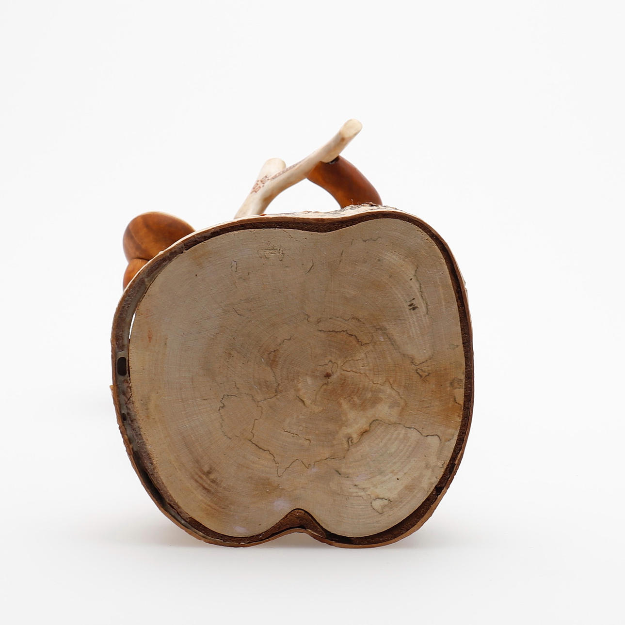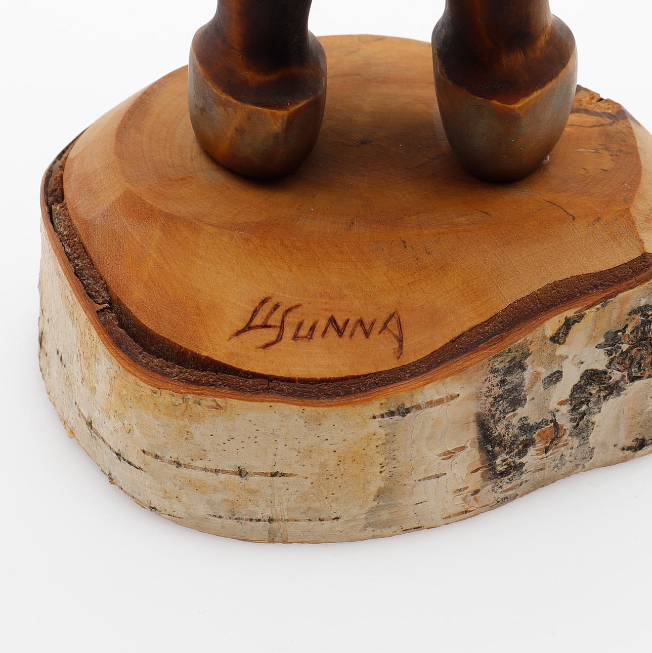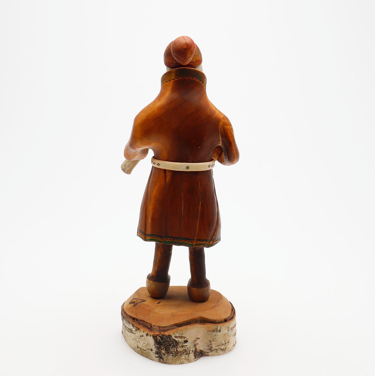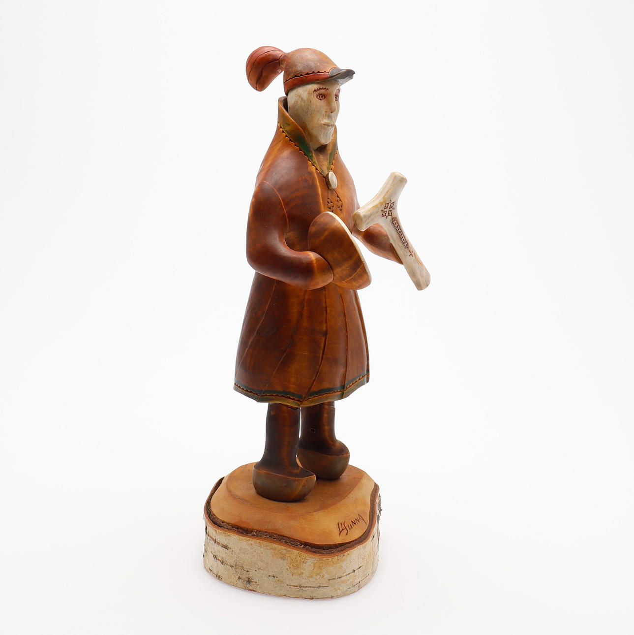 Signed, sculpture of birch and reindeer antler, height 35 cm.