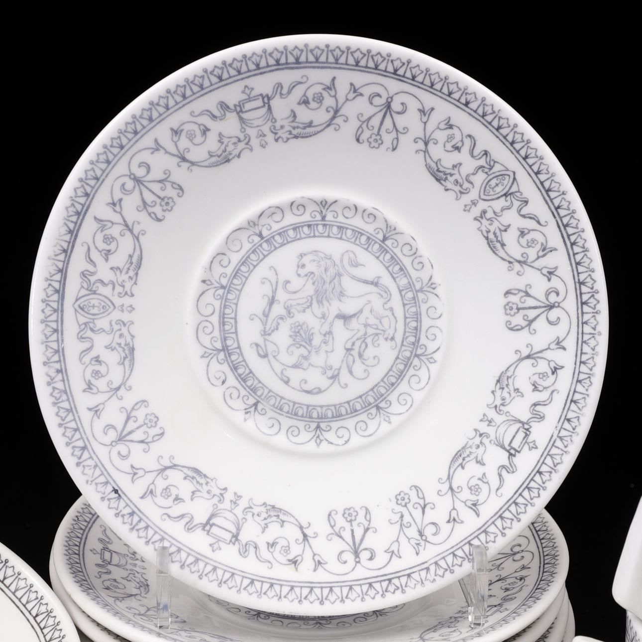 11 dishes, diameter 17 cm, 10 cups, height 5.5 cm.