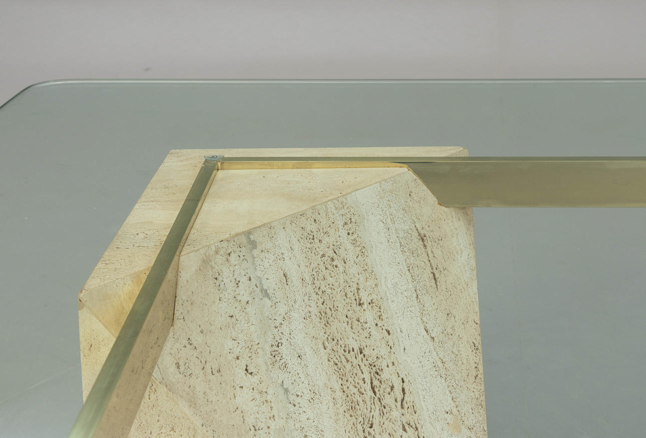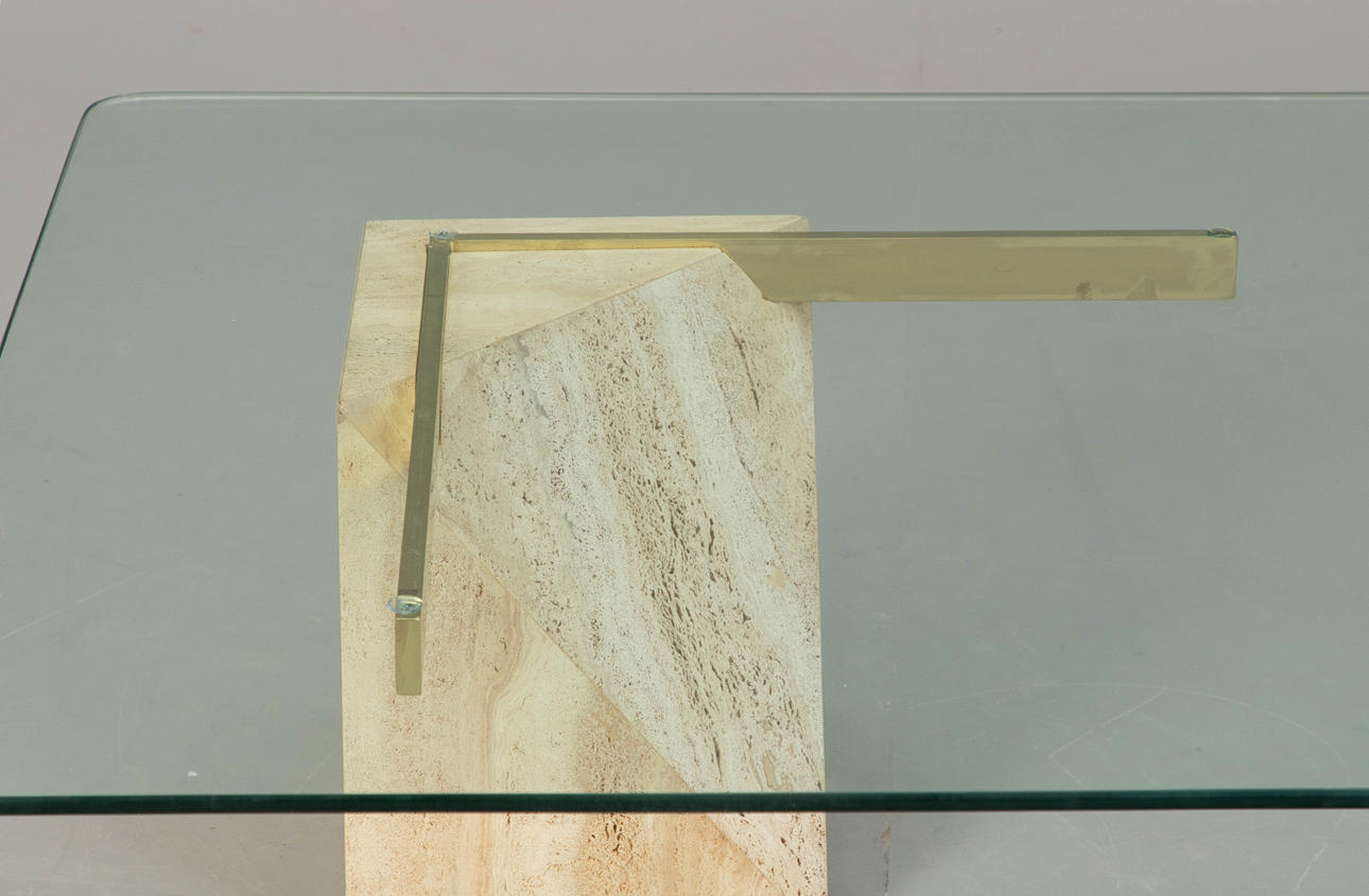 Travertine, loose glass plate, HxWxD: approx. 43x110x110 cm.