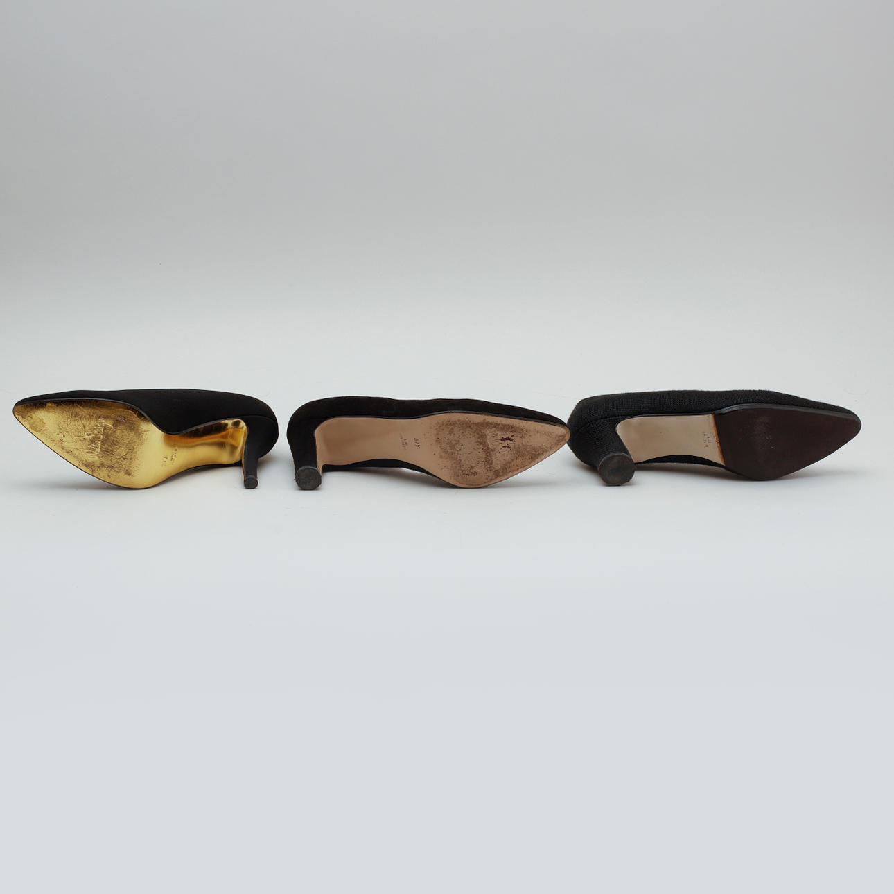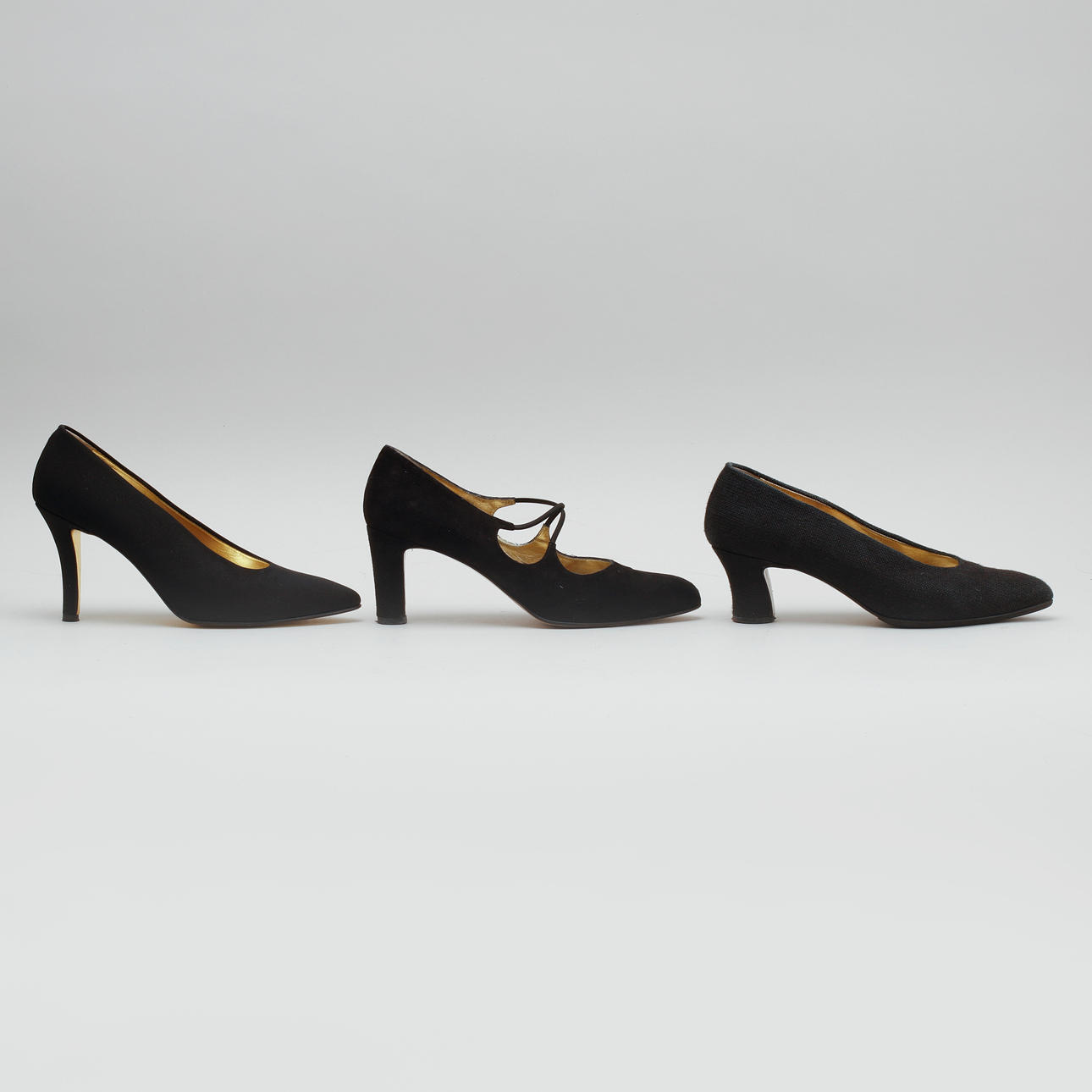 Fabric-2 pairs and suede. Heel: 5, 7, 8.5 cm.
