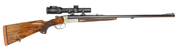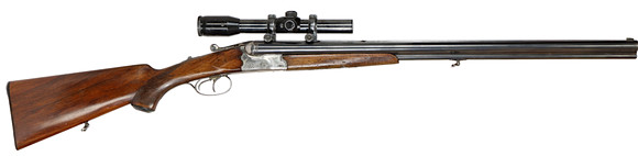Number of cartridges 1, barrel arrangement EP, barrel length 74 cm. Cord-wound barrel, horn crutch, loose butt included.