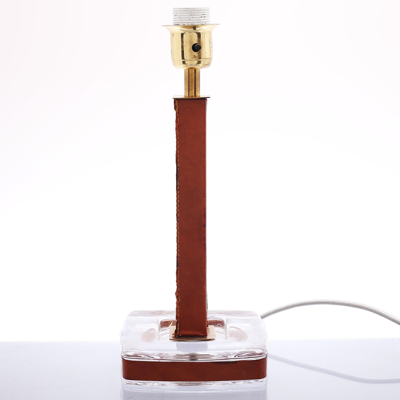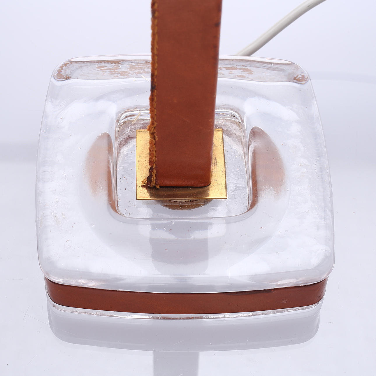 2102208. TABLE LAMP, leather/ glass.