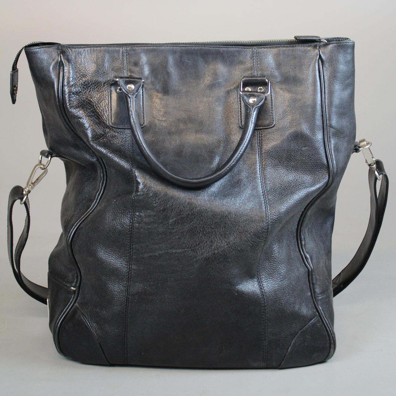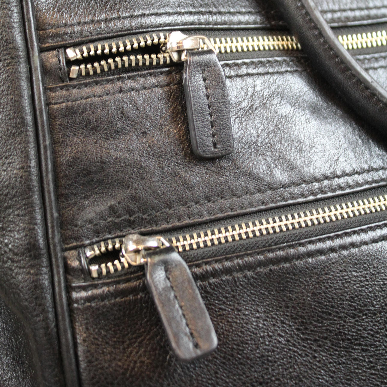 Larger leather bag/bag with 2 external compartments with zipper and one inside with zipper.