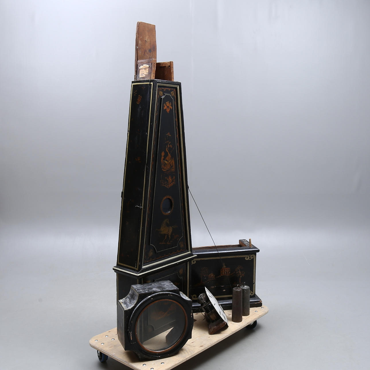 Chinese decor. Total height approx. 235 cm. 2 plumb bobs and pendulum included.