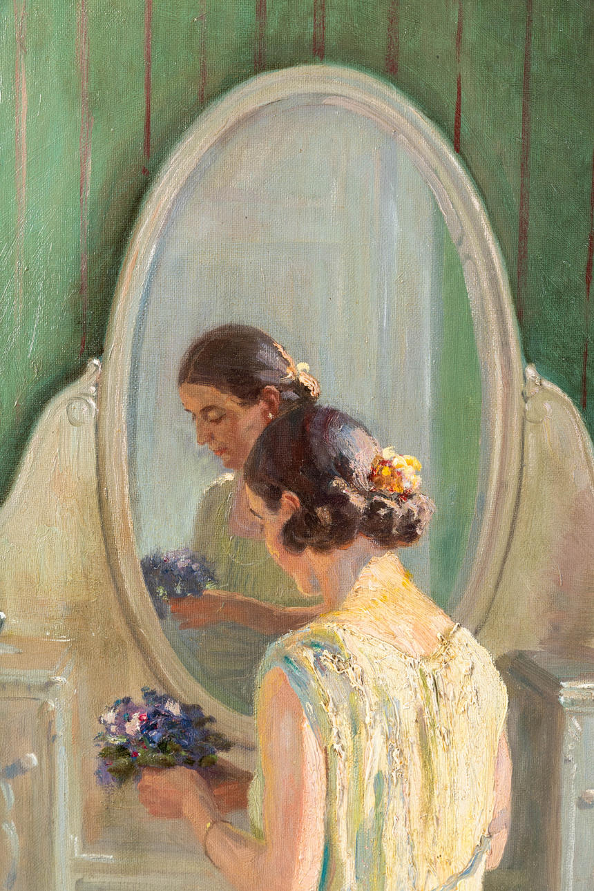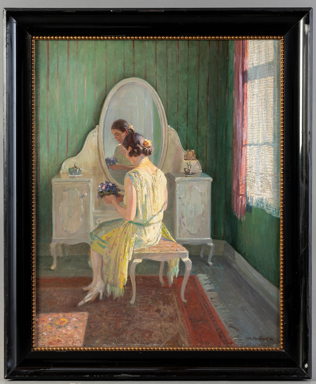 Robert Panitzsch (1879-1949), Lady at the dressing table, oil on canvas, 1929, signed and dated lower right, approx. 81 x 66 cm, with frame approx. 96x80 cm.