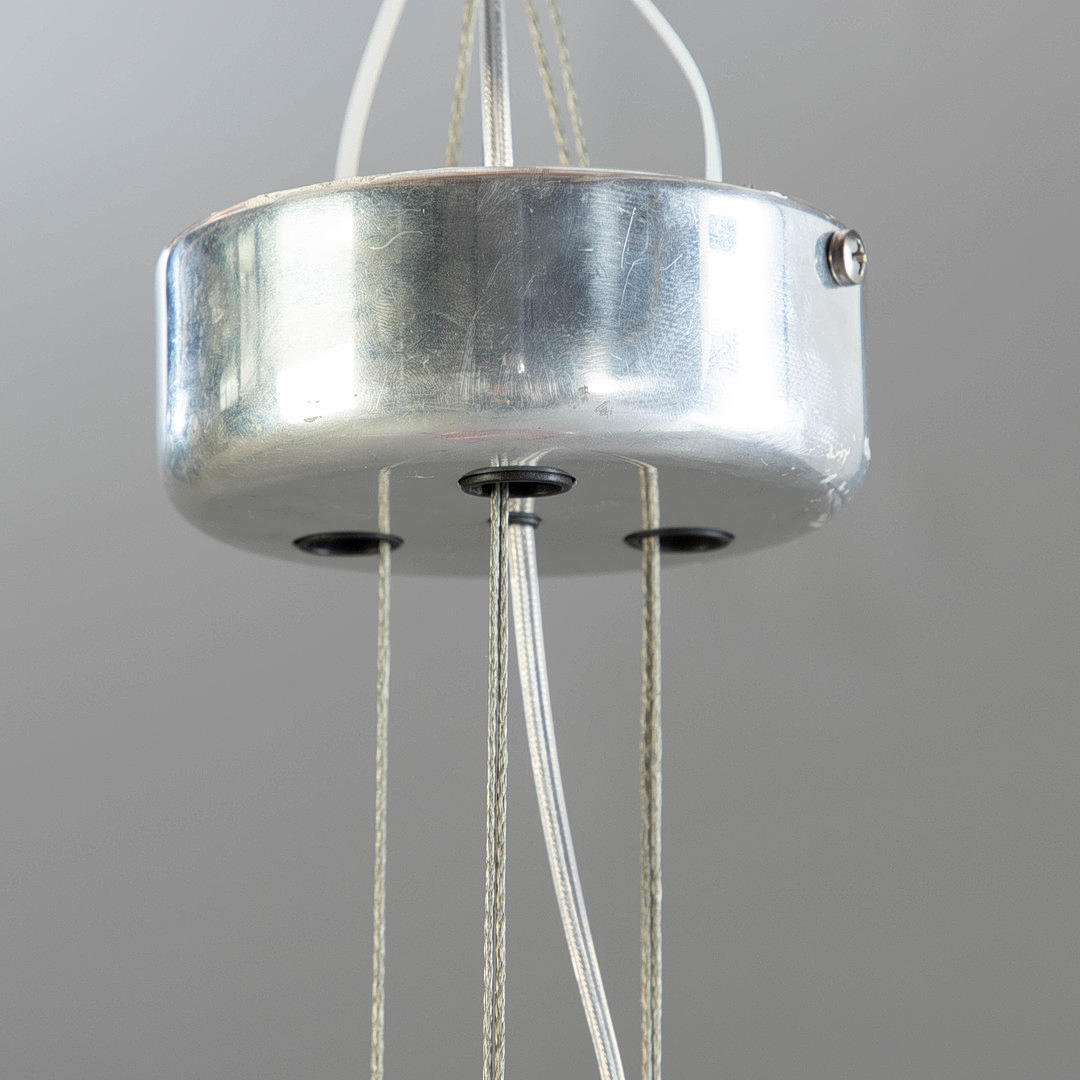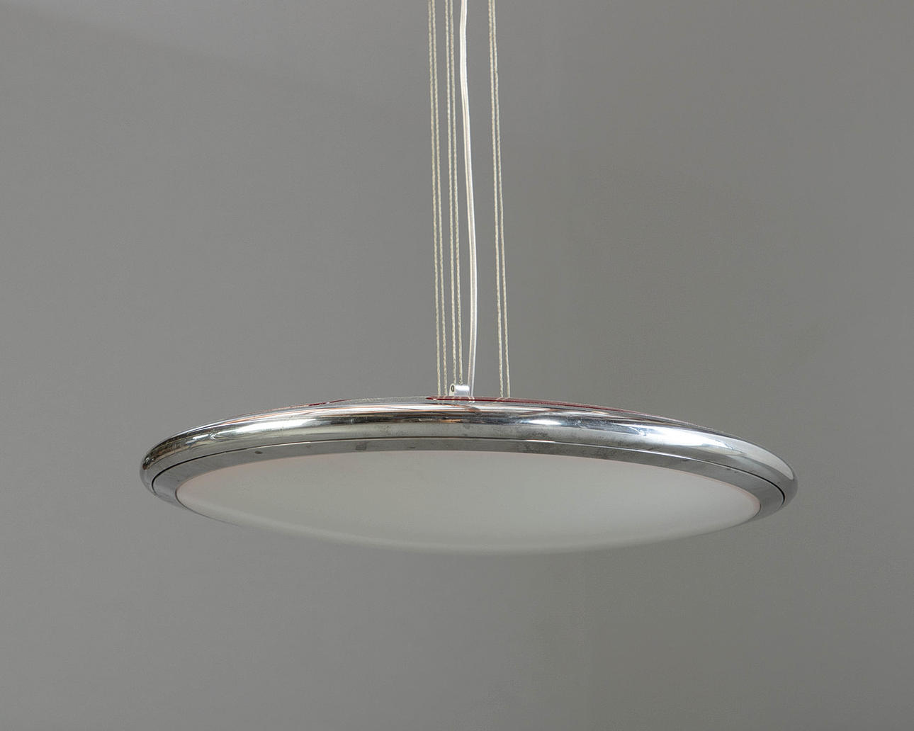 Height adjustable. Satin aluminum, opal glass and PC glass in red. Diameter 40 cm.