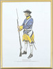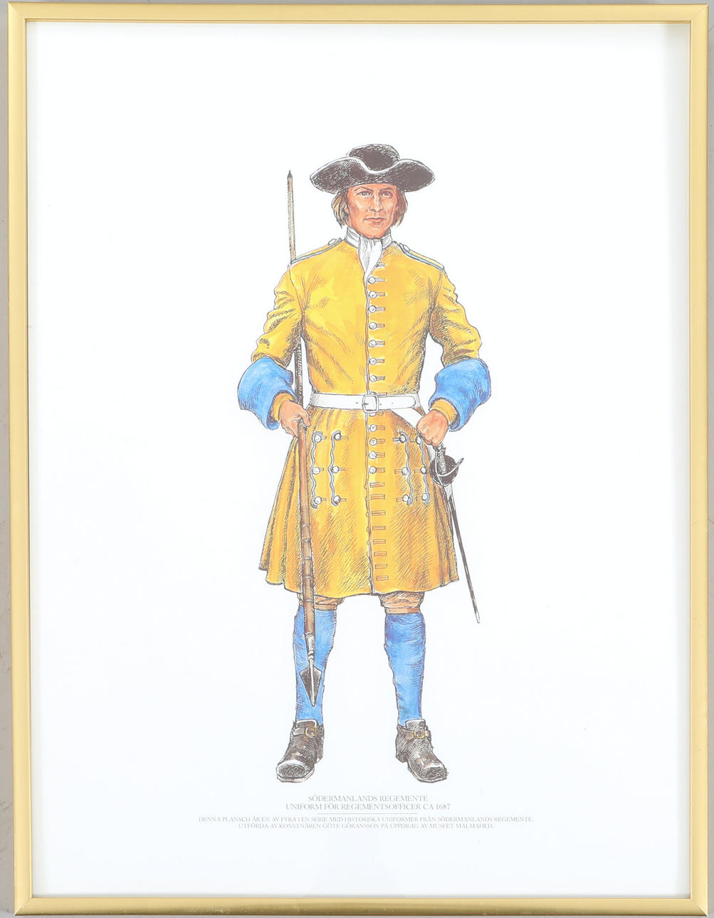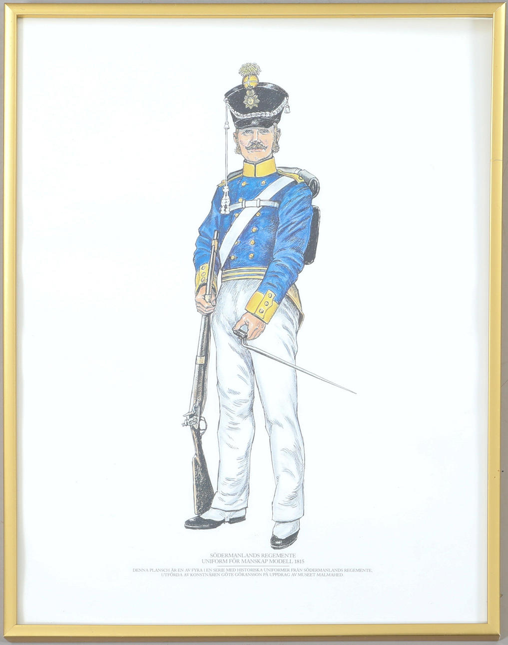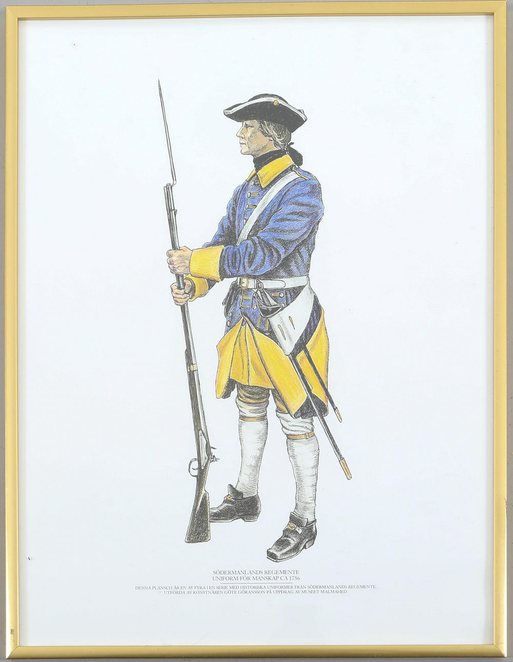 Södermanland's regiment, uniform flr personnel ca. 1756, 1886, 1815, 1687, Göte Göransson on behalf of the Malmahed Museum Dimensions of the frame approx. 31 x 41 cm Dimensions of the image surface approx. 29 x 39 cm.