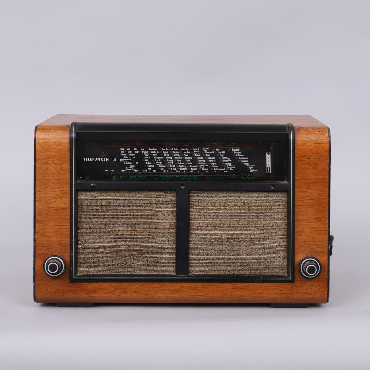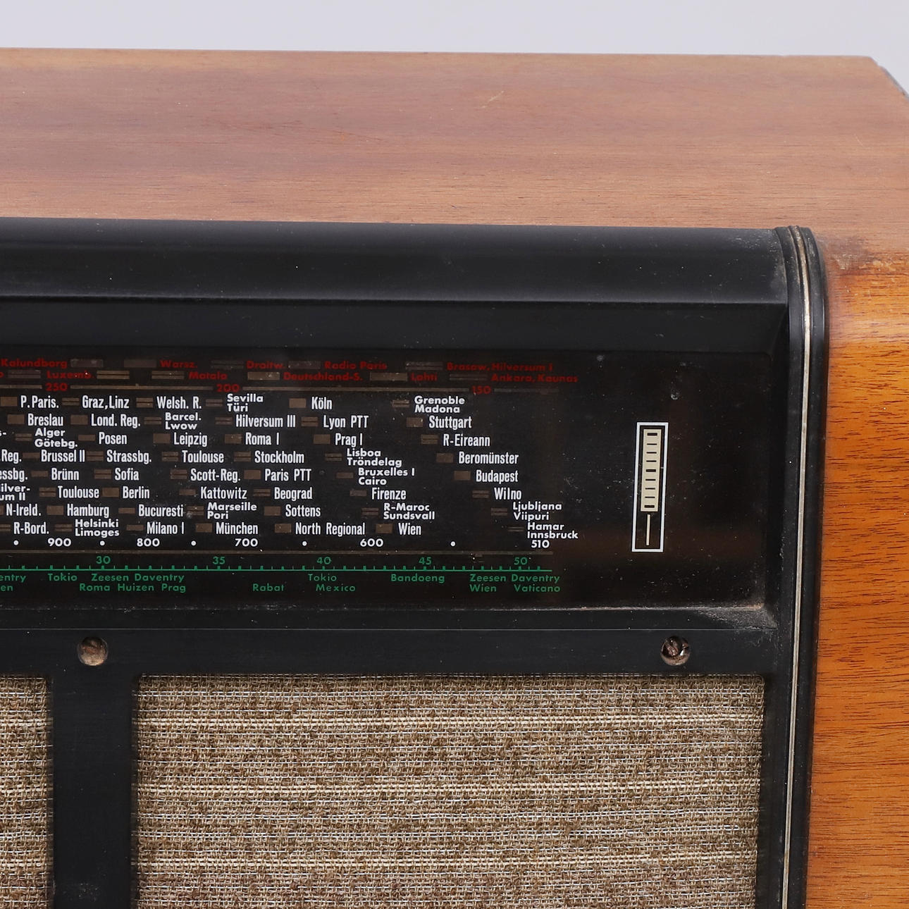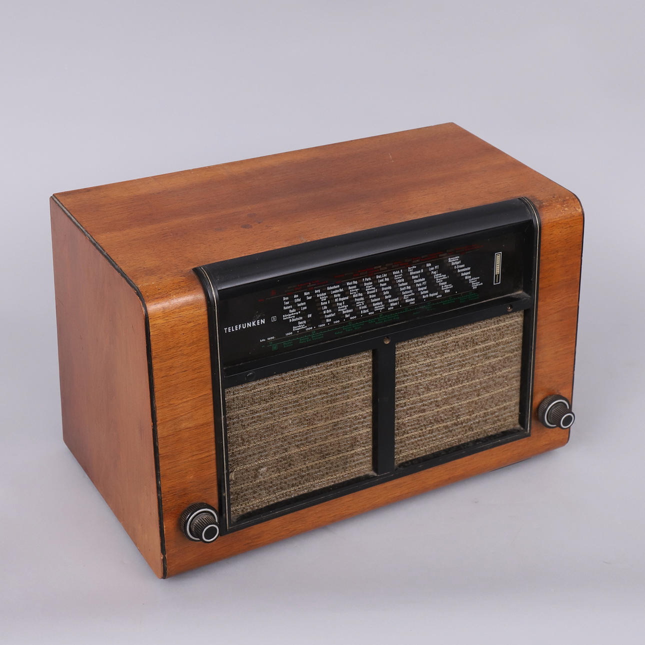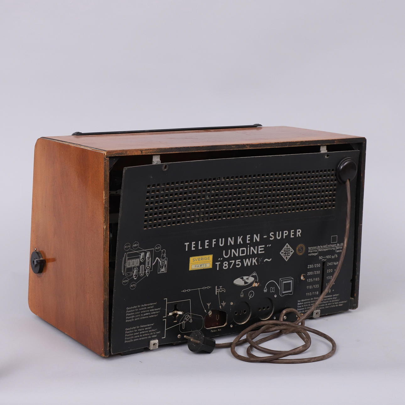 Telefunken Undine T 875WK, with cabinet in bakelite and mahogany veneer. Dimensions: width 45.5, depth 33, height 34 cm.