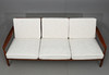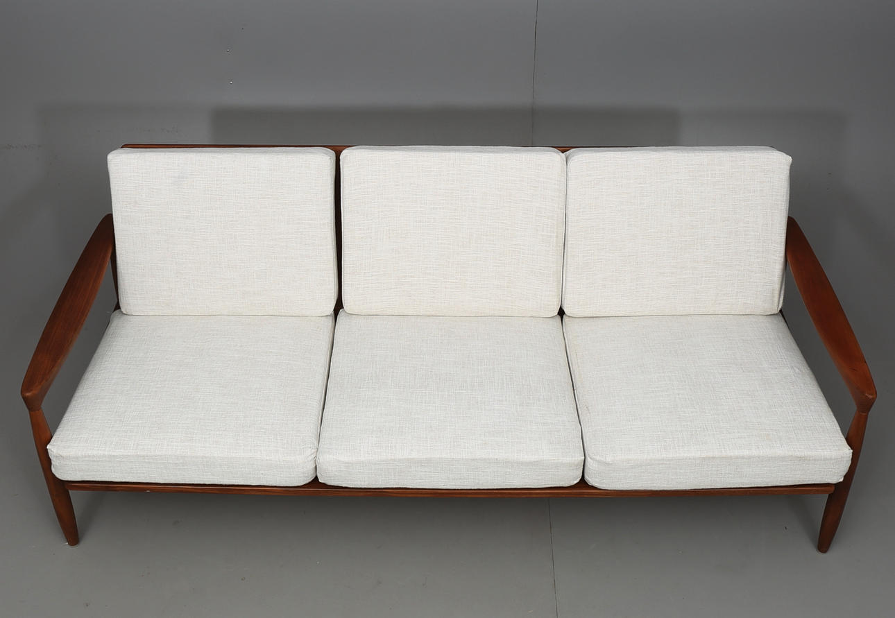 Three-seater, loose cushions, seat height 39 cm, length 185, width 74, depth 72 cm.