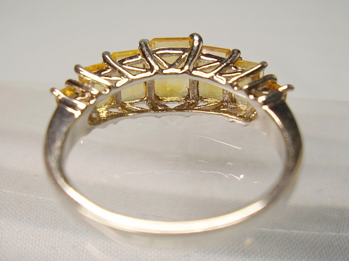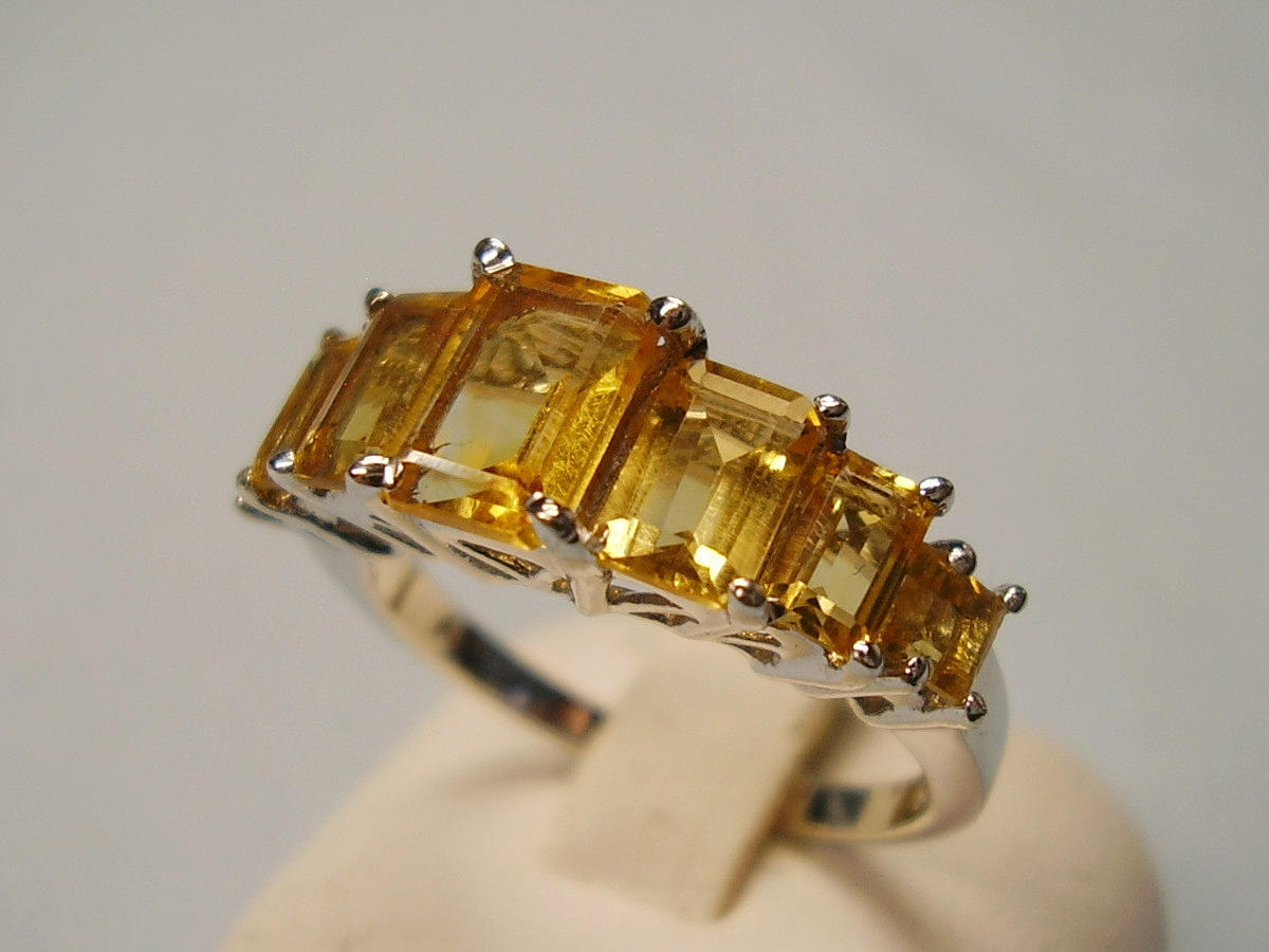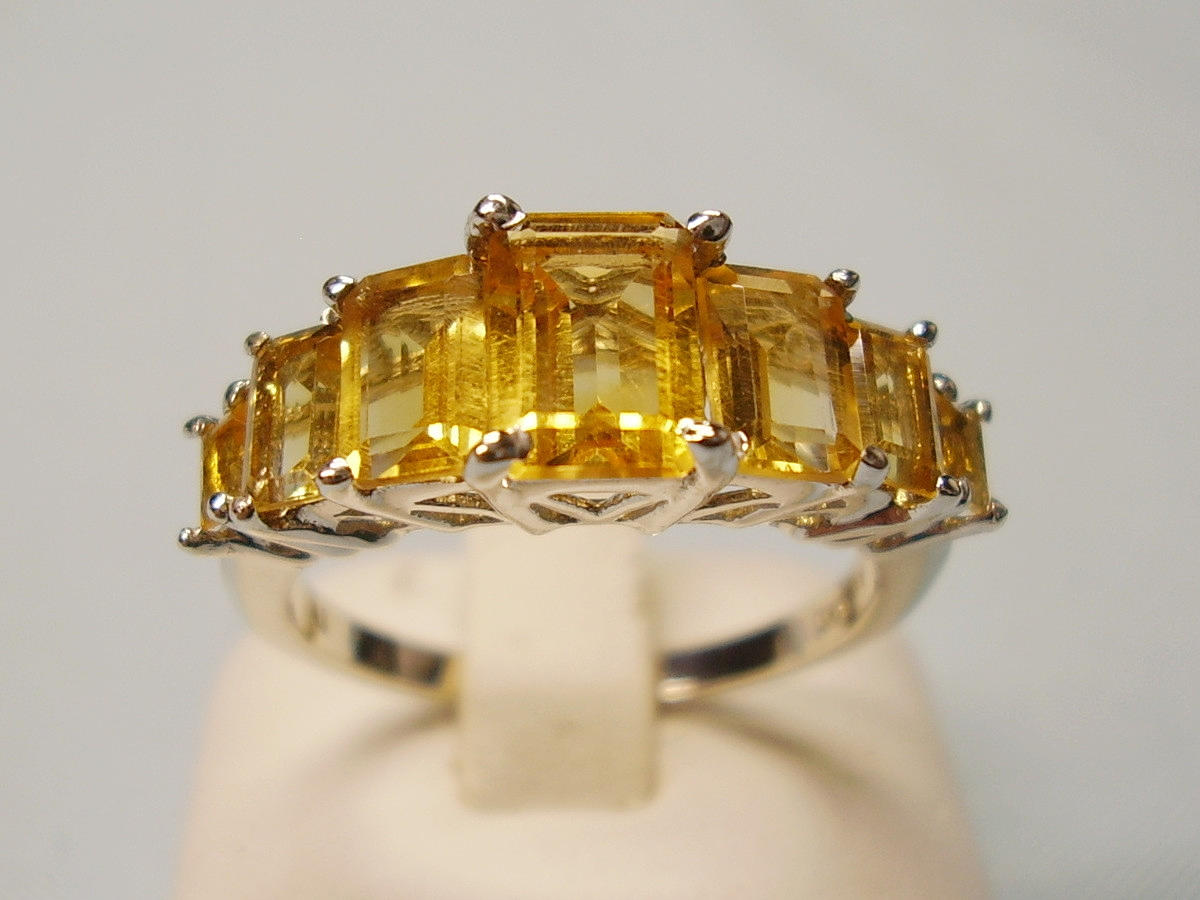 It is set with 7 faceted baguette-cut citrines arranged in graduated sizes.