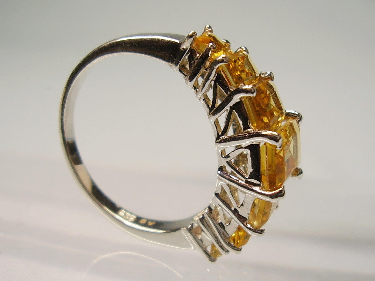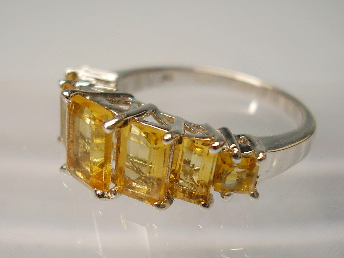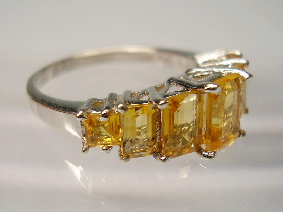 It is set with 7 faceted baguette-cut citrines arranged in graduated sizes.