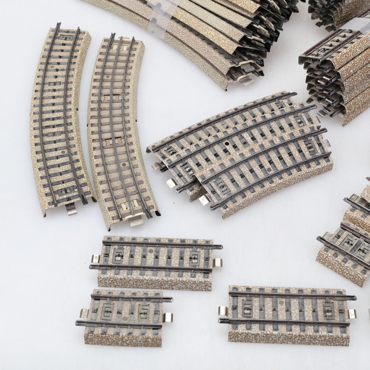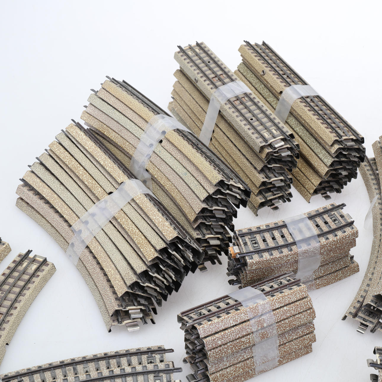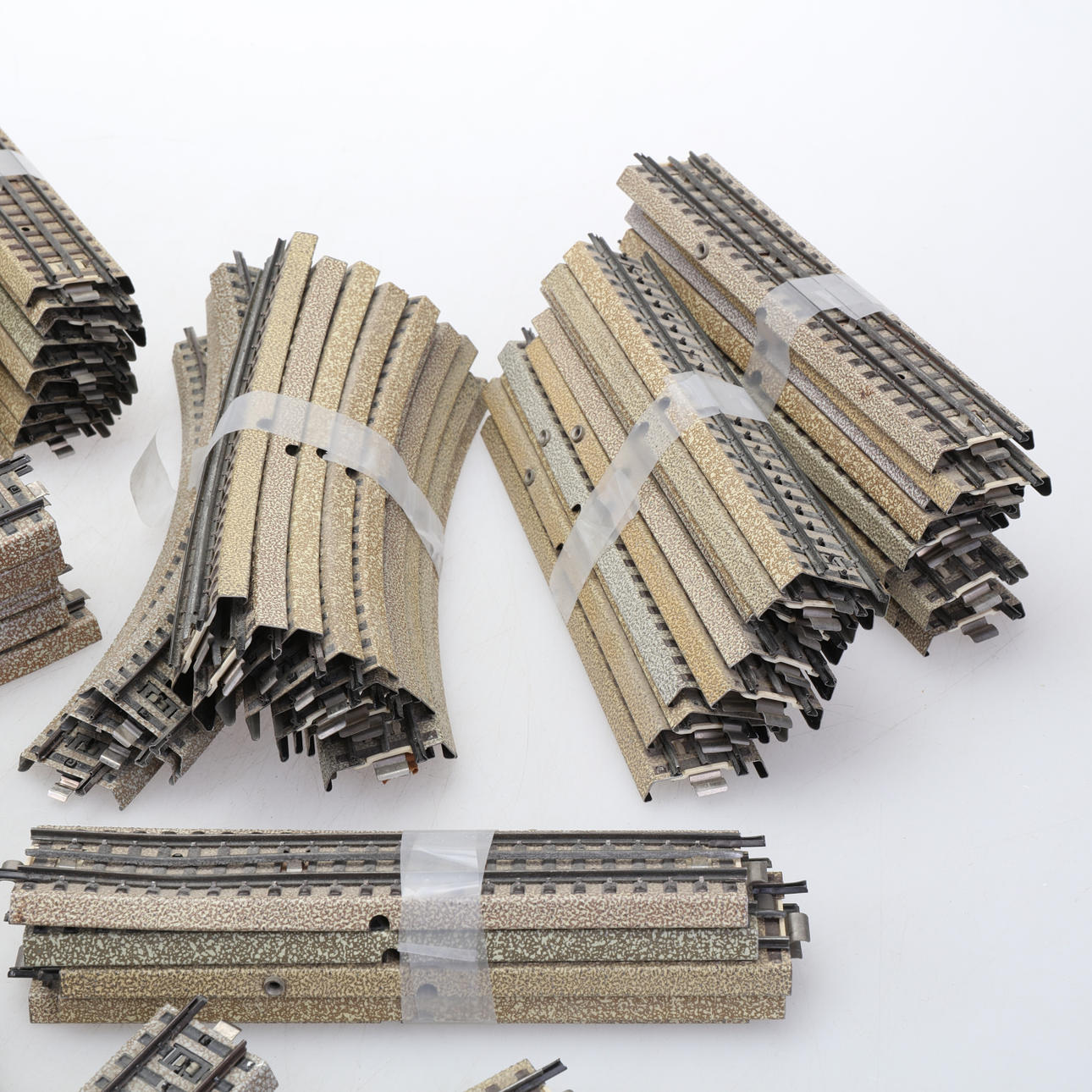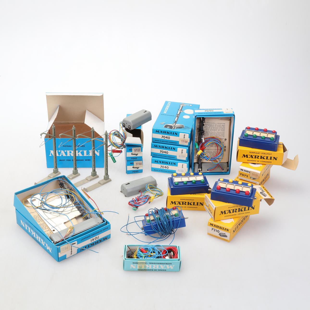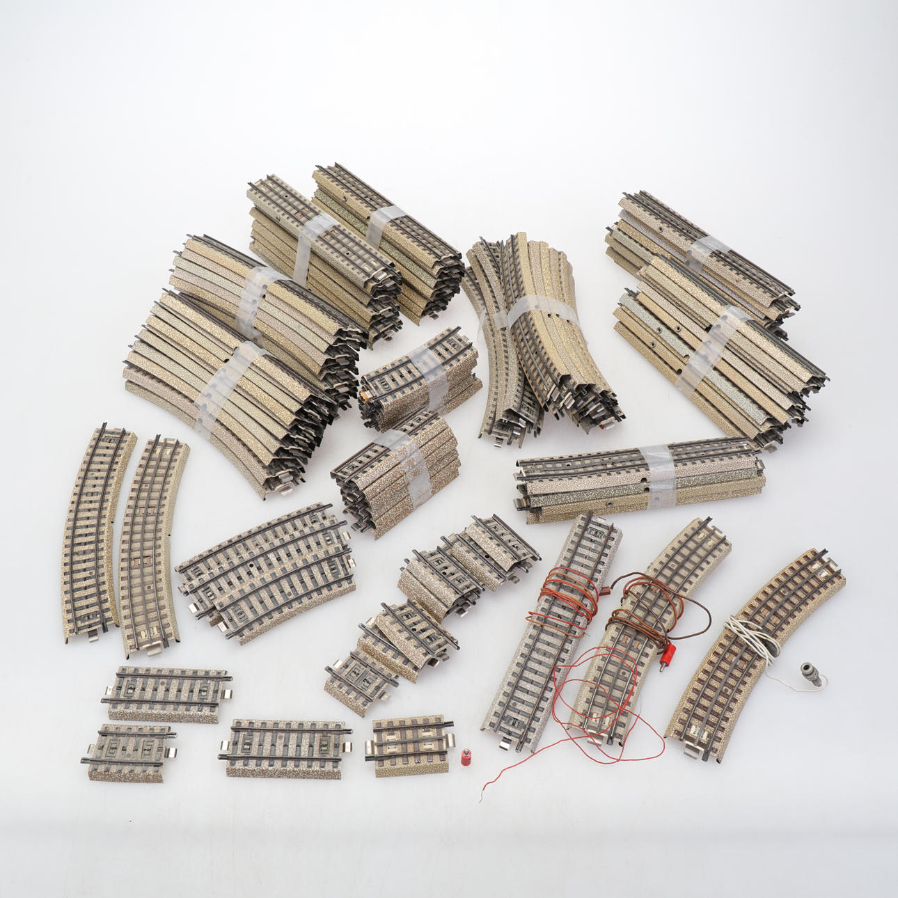Contact rail bent no. 5147, 7 pcs. Contact rail straight no. 5146, 6 pcs. Switch console no. 7210, 2 pcs. Switch console no. 7211, 1 pc. Set console no. 7072, 3 pcs. 5112, 3 pcs. Main signal no. 7041, 1 pc. Main signal no. 7040, 5 pcs. Main signal no. 7045, 1 pc. Main signal no. 7039, 1 pc. Wire post no. 7009, 3 pcs. No. 7268, 5 pcs. Truss bridge no. 7262, 3 pcs. B211 Kibri Loose parts Track stop, desk 476/4, 3 pcs manual gear 3601WR, double gear. electric switch 3601 MWL, rail parts bla 5110, guys Transformer 280 A, 220 volts 1 bag of rails, mixed shapes and sizes.
