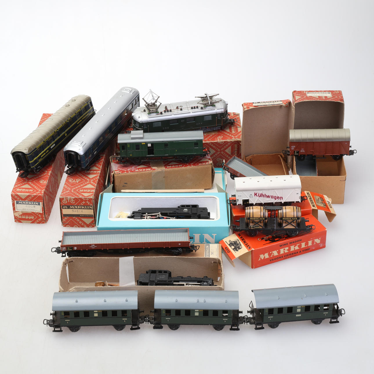 Locomotive in original box, no. 3031 Locomotive in other box, no. 89005 Wagons in original box, no. 4909, 346/6, 4508, 4510, 305, 391/1, 2 pcs 306/1 Wagons in other box, no. 427, 2 pcs 3294 , 3 pcs 327/1 Gearbox in original box, manual, 2 pcs, no 1p 3601 MW Gearbox in original box electric, Normal gear, curve gear, 3 gear and double gear, no 1p 3601W, 5207, 2 pcs 5117, 4 pcs 5202, 2 pcs 5214, 2 pcs 5140.