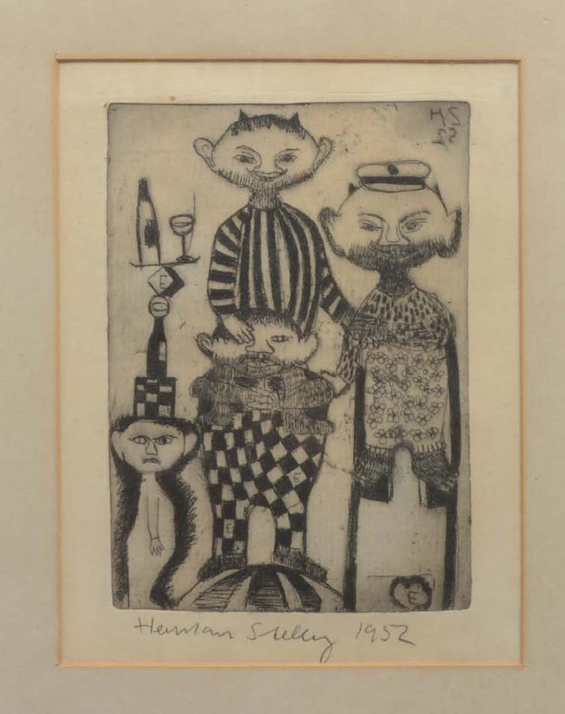 2124087. OIDENTIFIERAD KONSTNÄR. Bearded men. Drawing.