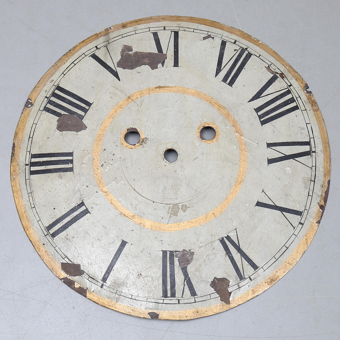 Wear, damage. Renovated/completed. Mask-tongued. Later painting. Later dial and hands. Not functionally tested. No functional guarantee is provided.
