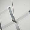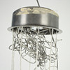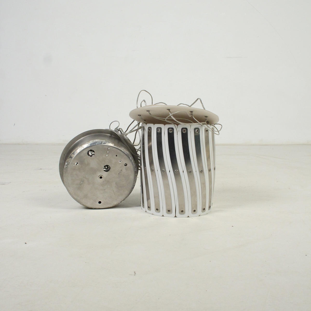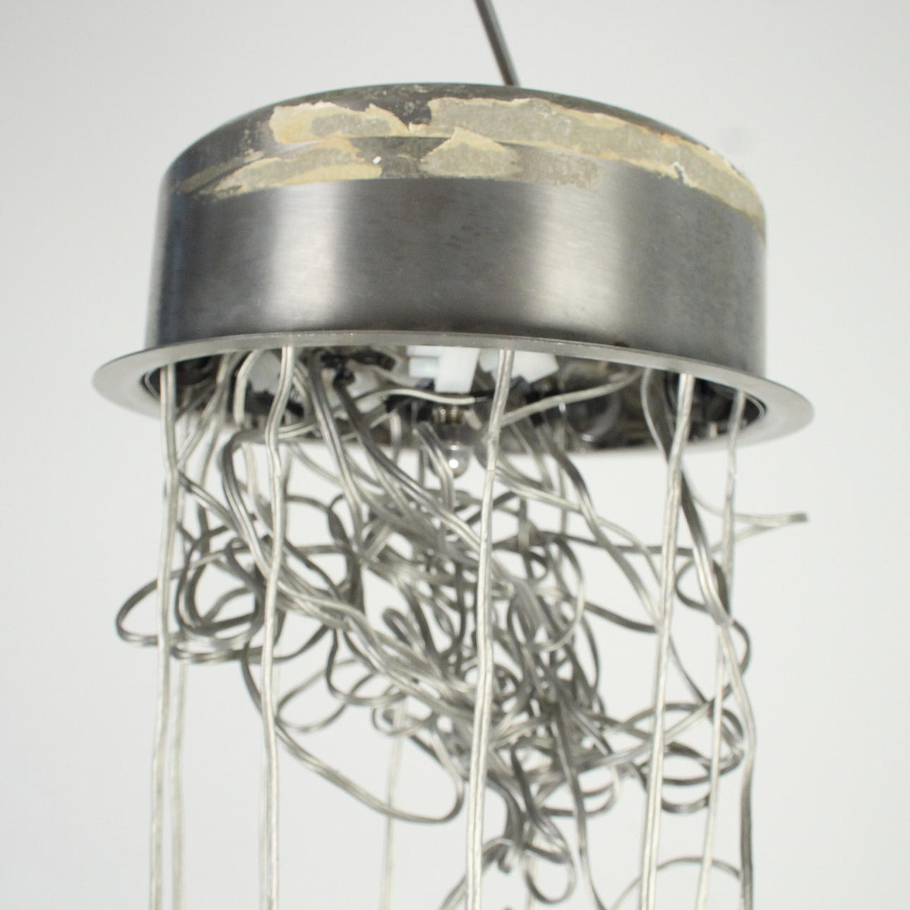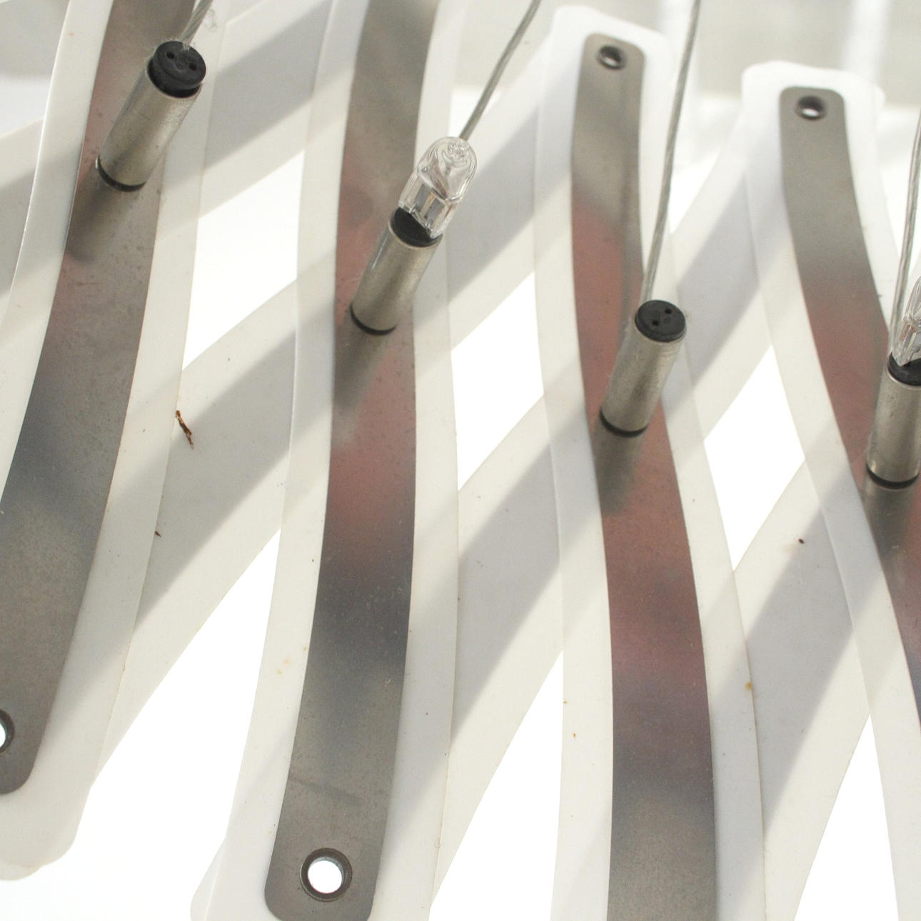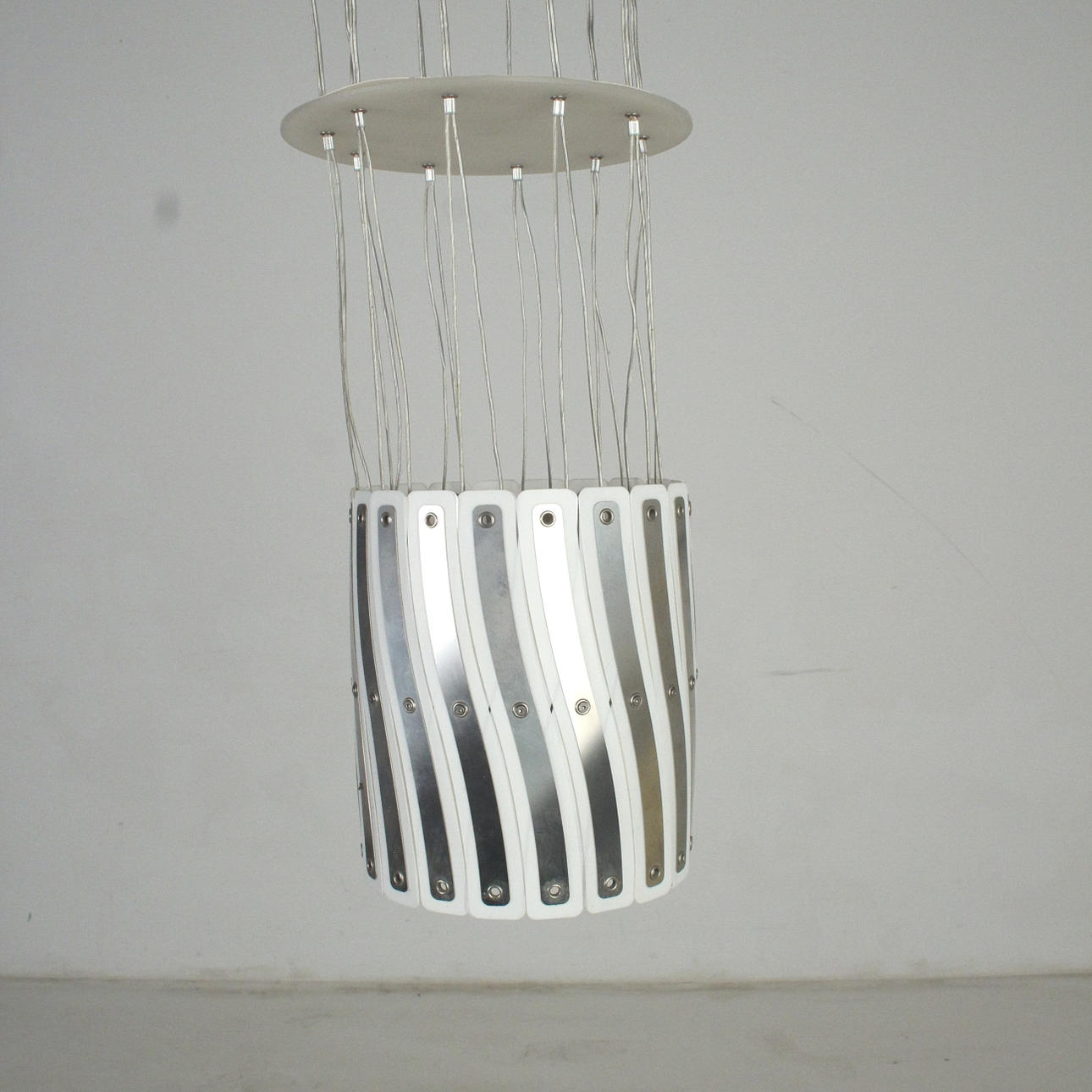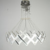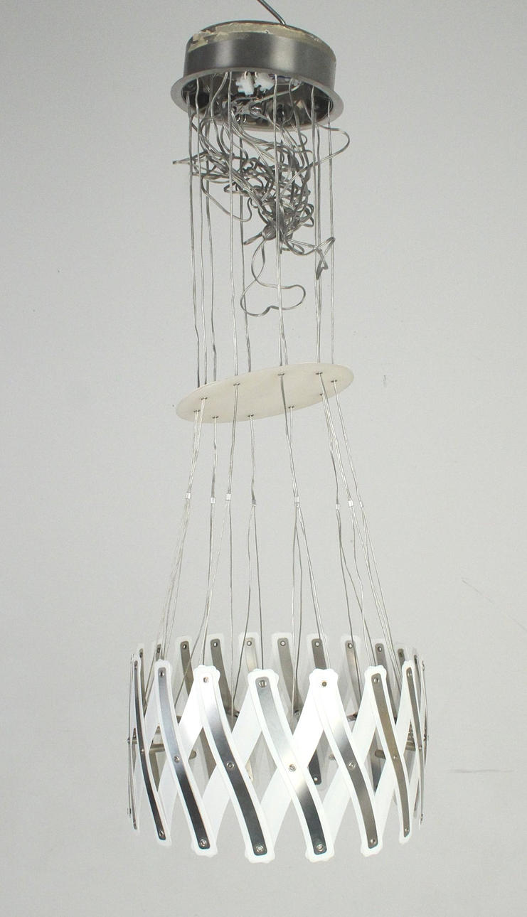 When it came to the material, Paxton opted for stainless steel slats that are attached to slats made of transparent polycarbonate film and riveted together. The bulbs are on the inside so that no light dazzles the viewer. Up to three of these concertina rings can be combined with each other and combined to form a chandelier that looks magnificent but also exudes a certain pragmatic objectivity. For fans of crystal ornaments there is a set of crystal pendants that can also be attached to the lamp.