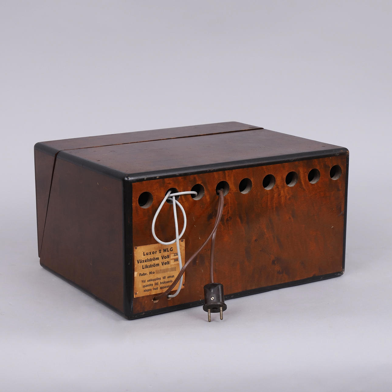 Luxor 2 WLG turntable, 78 rpm playback with gearbox. Cabinet in dark veneered birch.